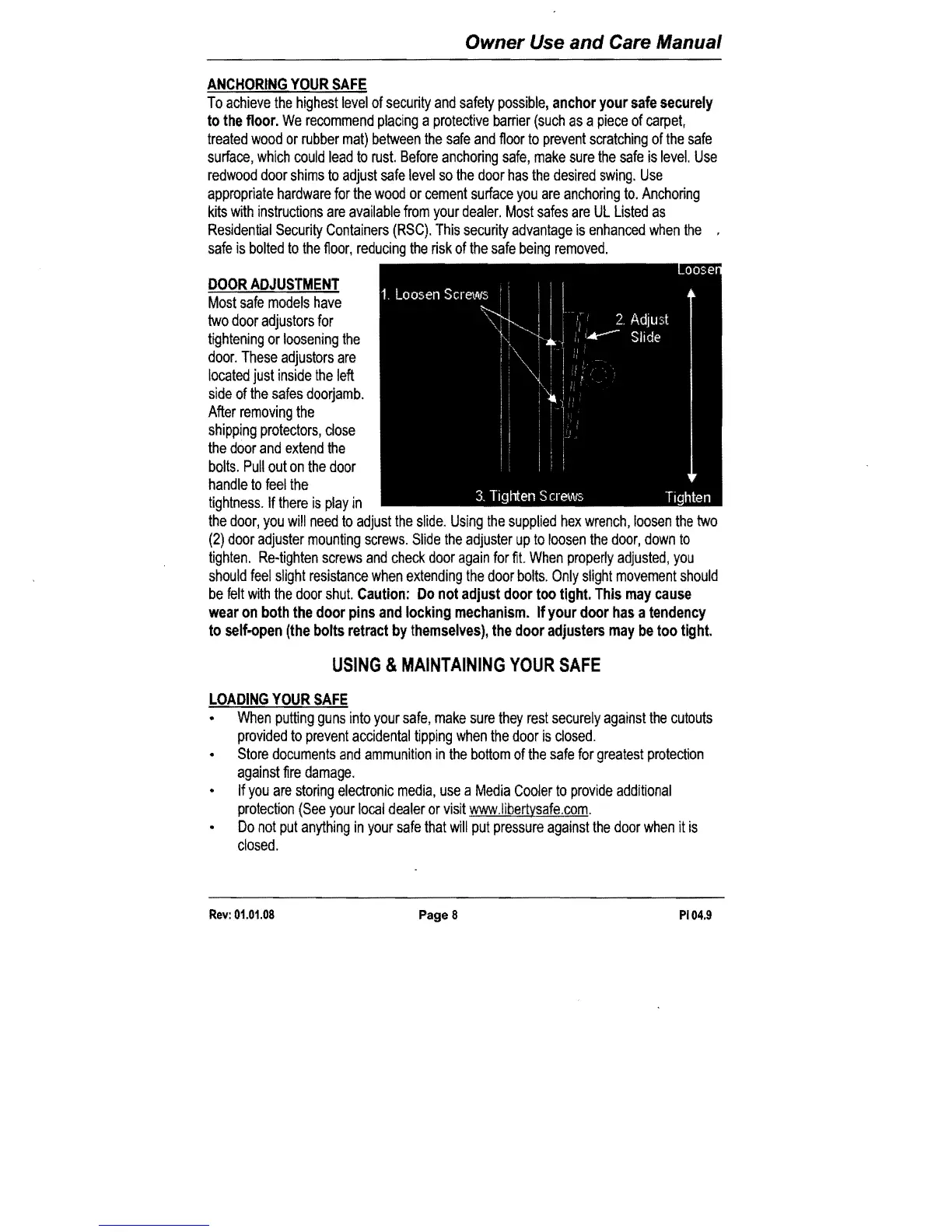 Liberty Safe - Anchoring and Maintaining Your Safe; Anchoring Your Safe