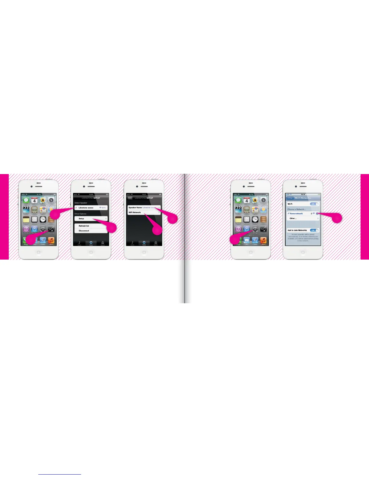 • Open “Libratone” app, “Select Speaker” and press “Setup”