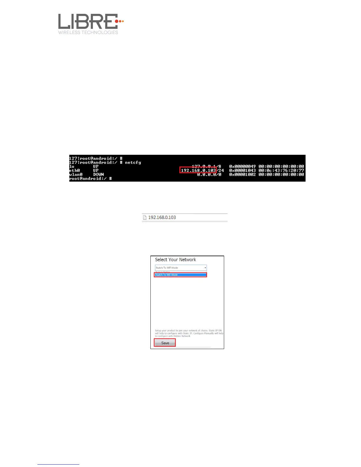 Step 1. Execute command #netcfg in the device terminal to know the device IP