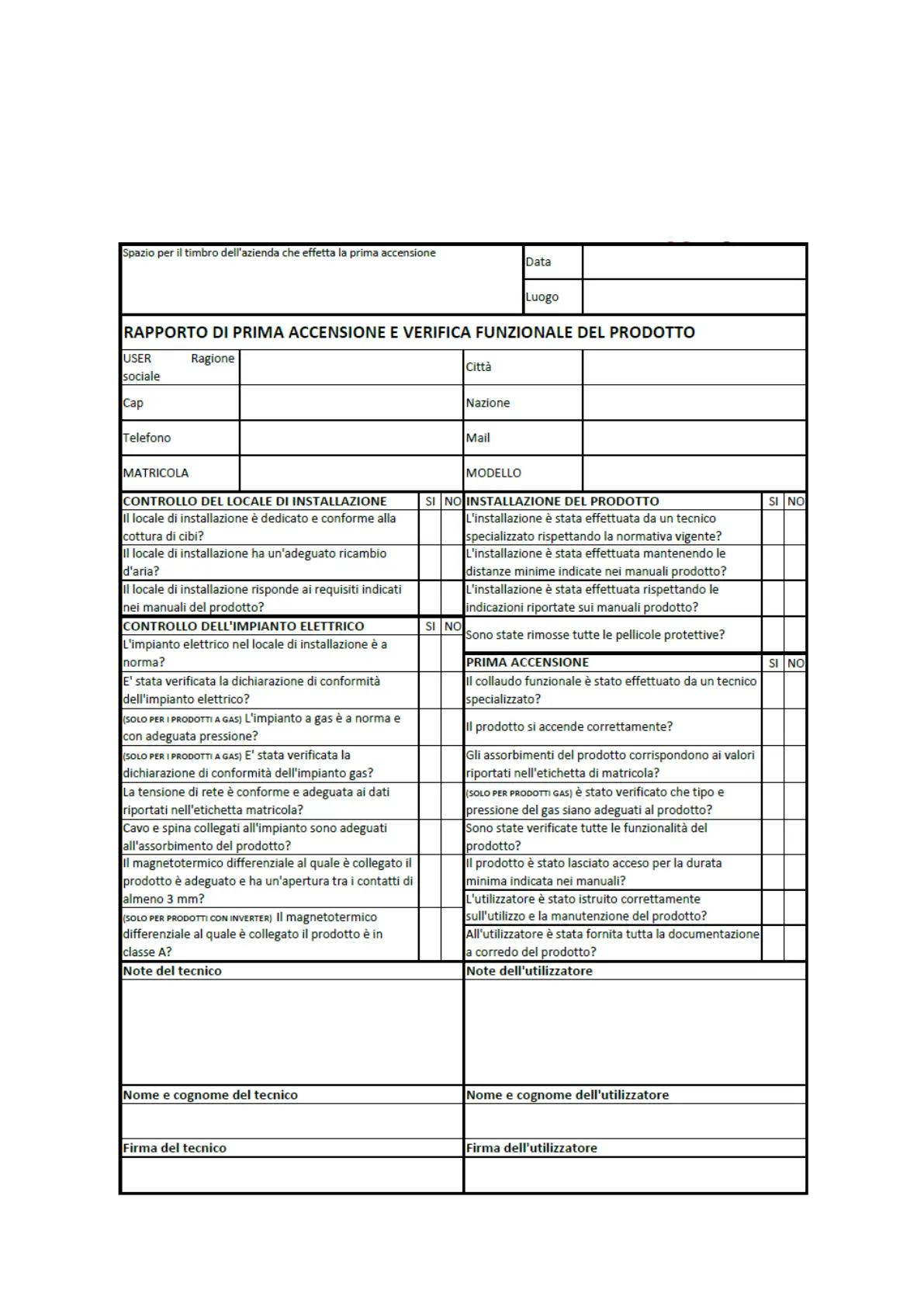 RELAZIONE DI PRIMO AVVIAMENTO E VERIFICA FUNZIONALE DEL PRODOTTO