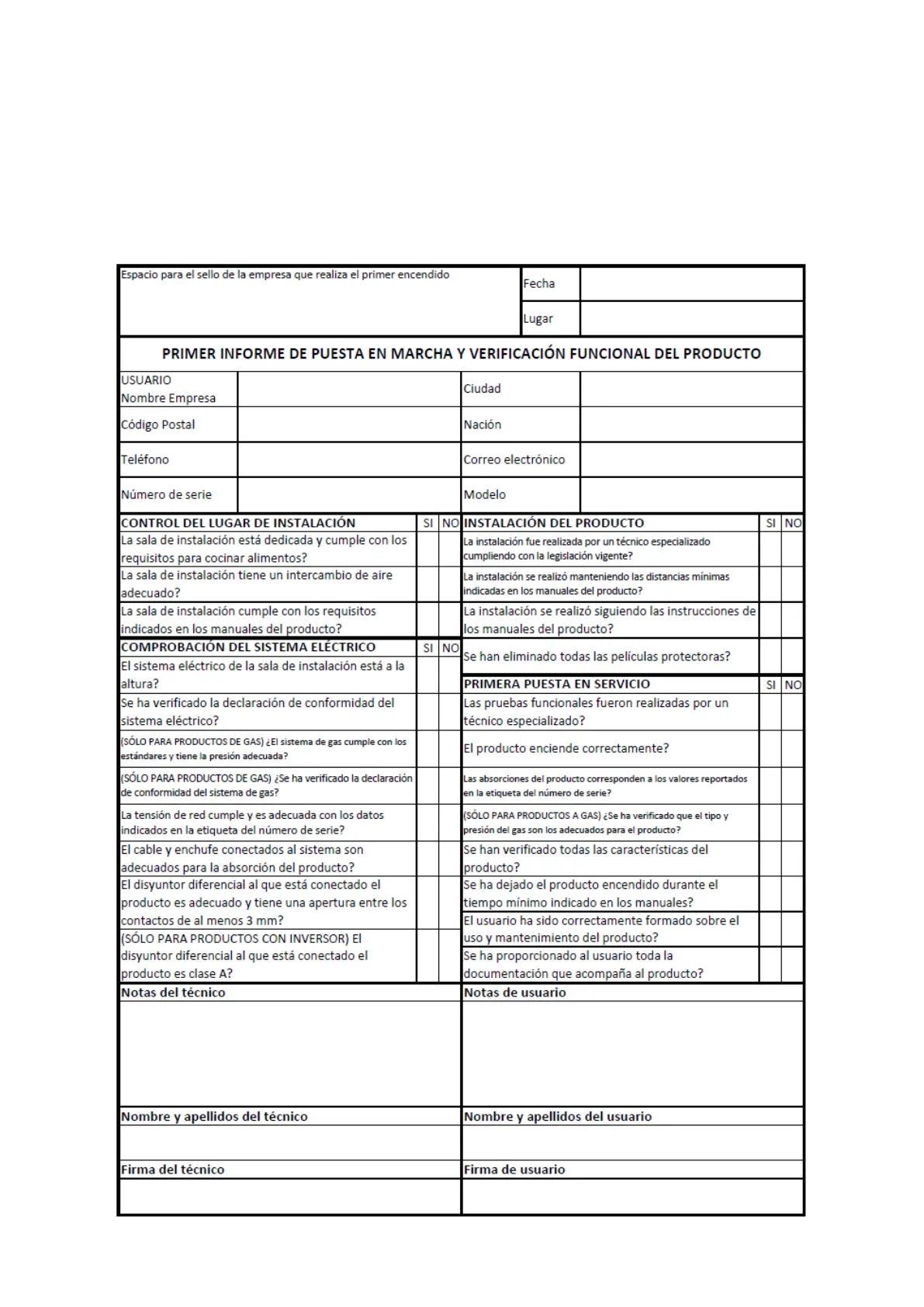 INFORME DE PRIMERA PUESTA EN MARCHA Y COMPROBACIÓN FUNCIONAL DEL PRODUCTO