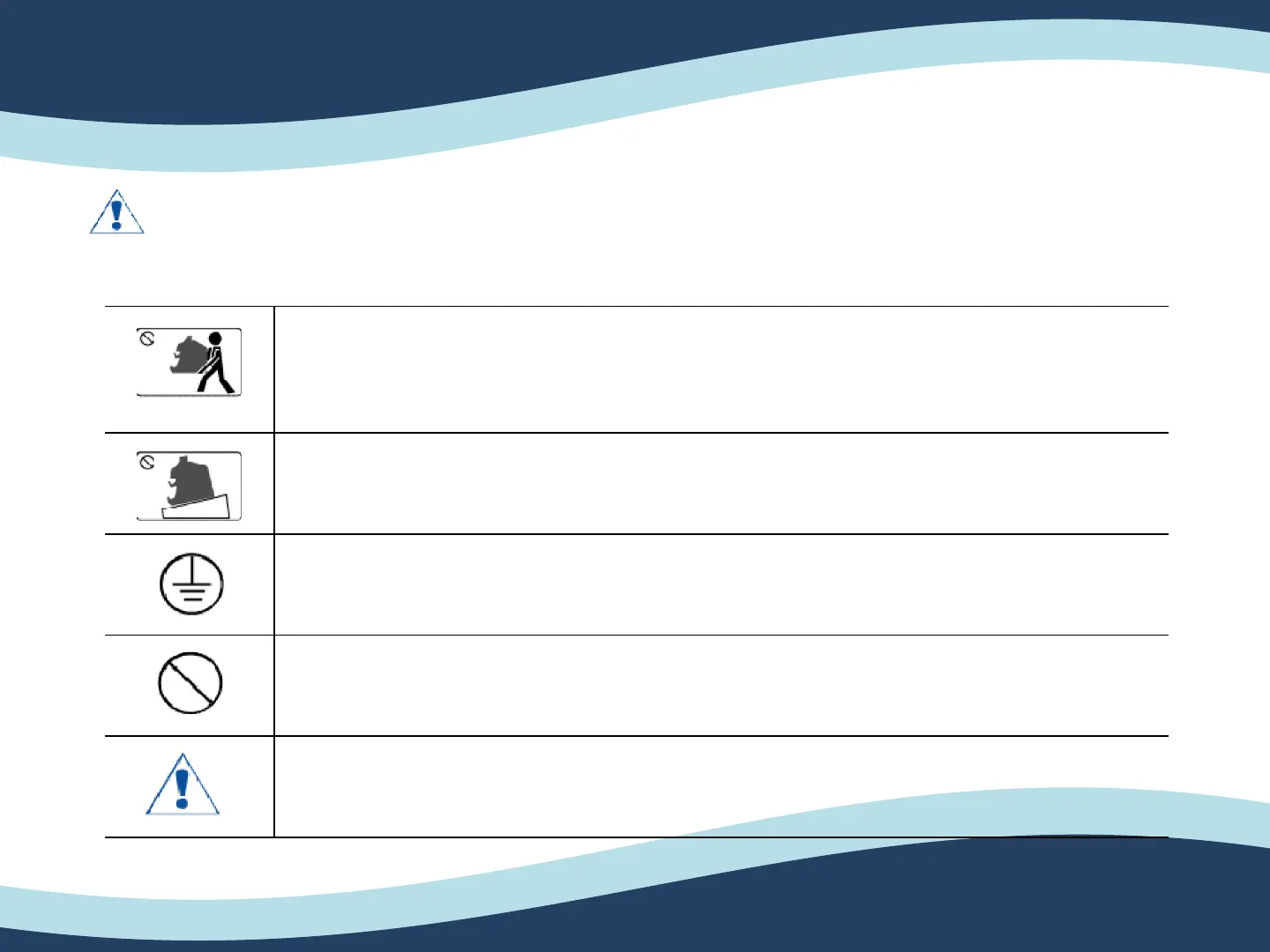 ►The machine could fall, causing injury or machine damage.