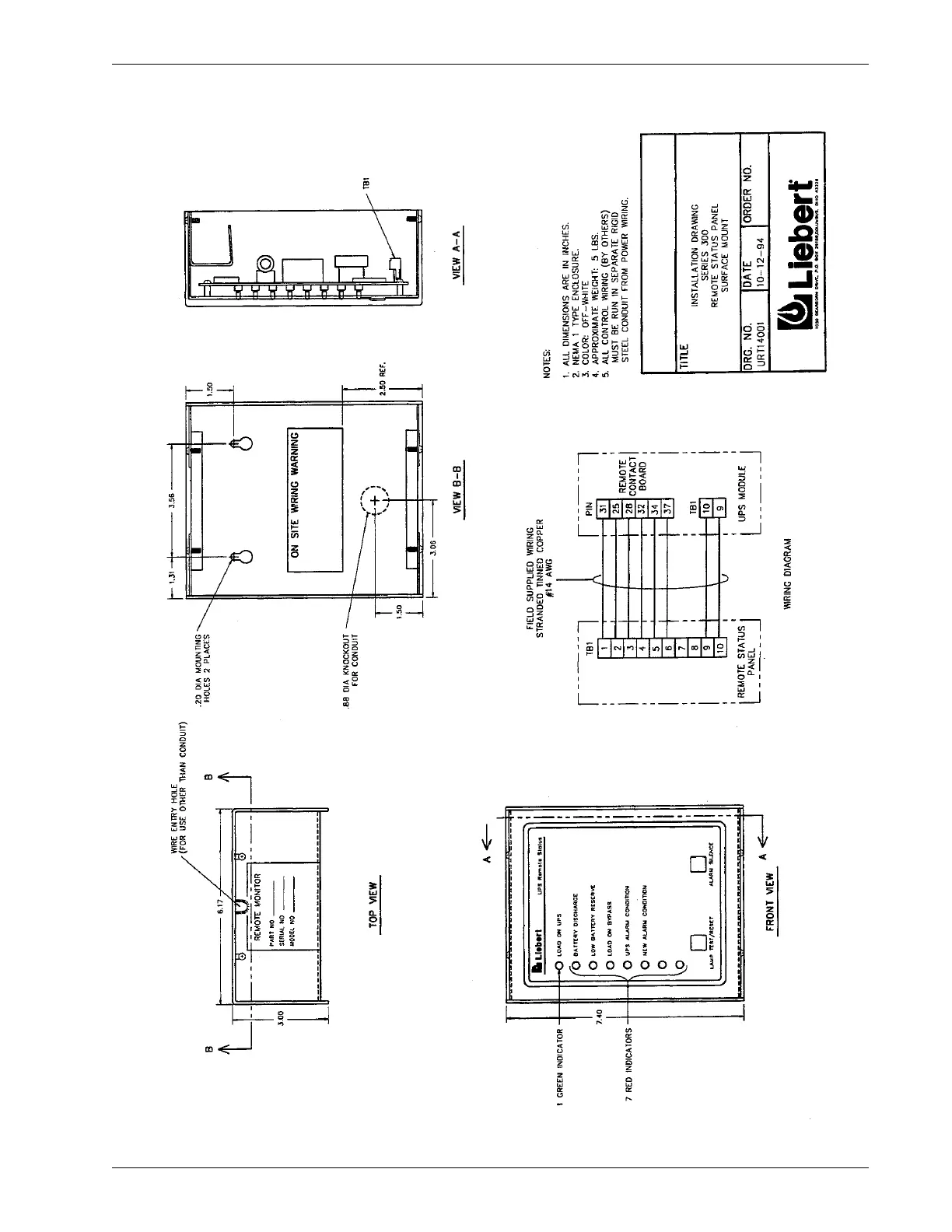 Liebert 311 - Figure 25 Optional Remote Status Panel
