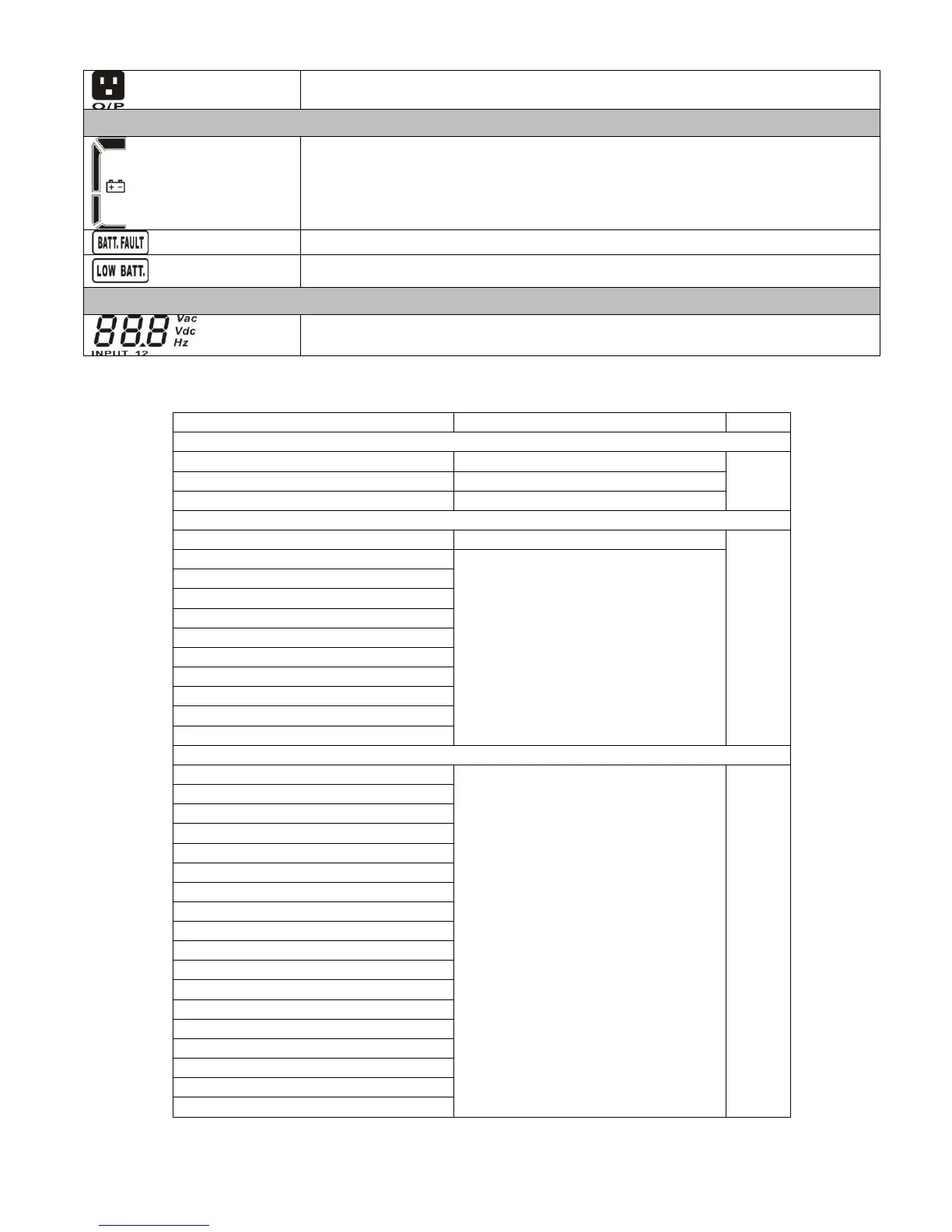 Vac: Input voltage, Vdc: battery voltage, Hz: input frequency