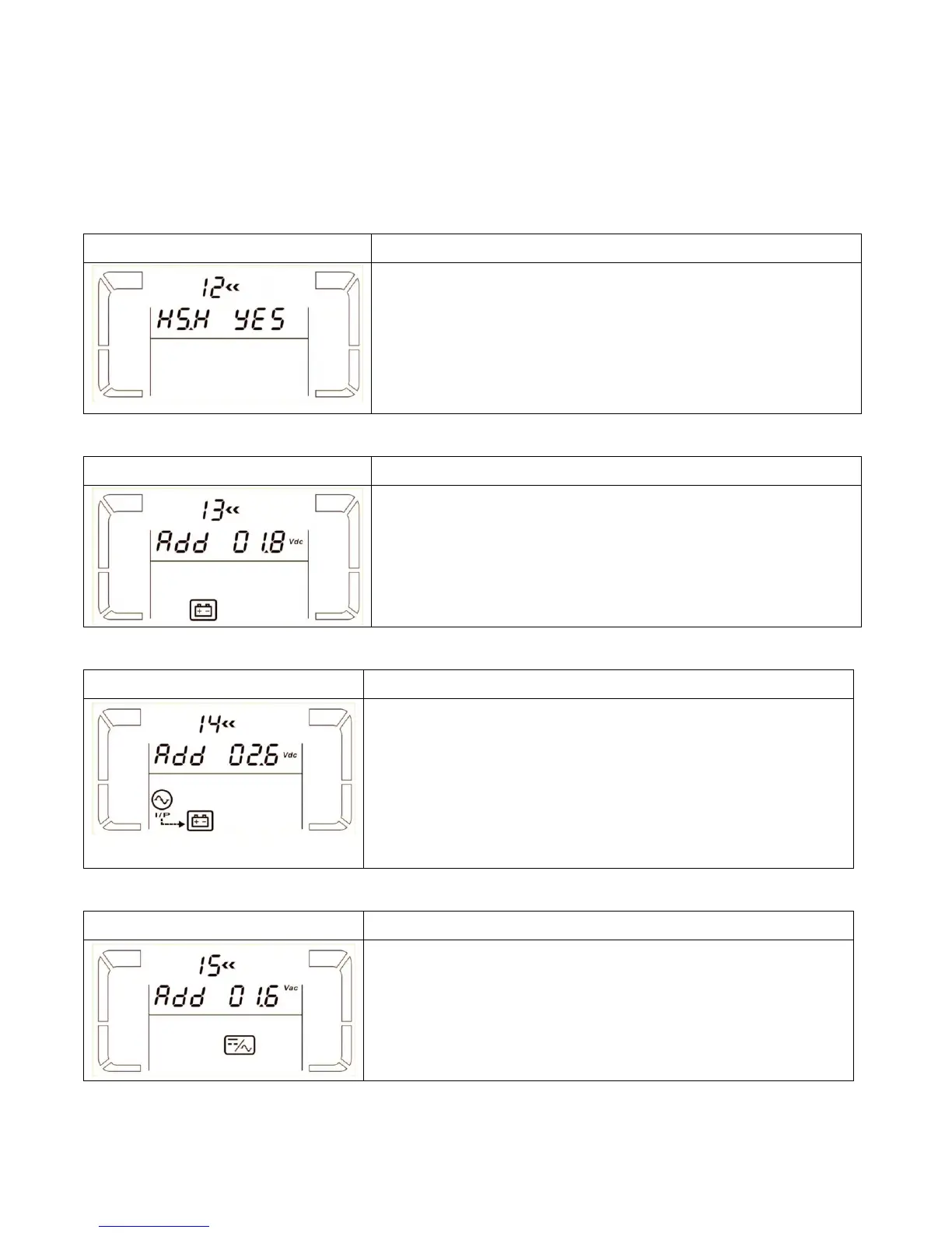 Parameter 2: Select “Add” or “Sub” function to adjust battery