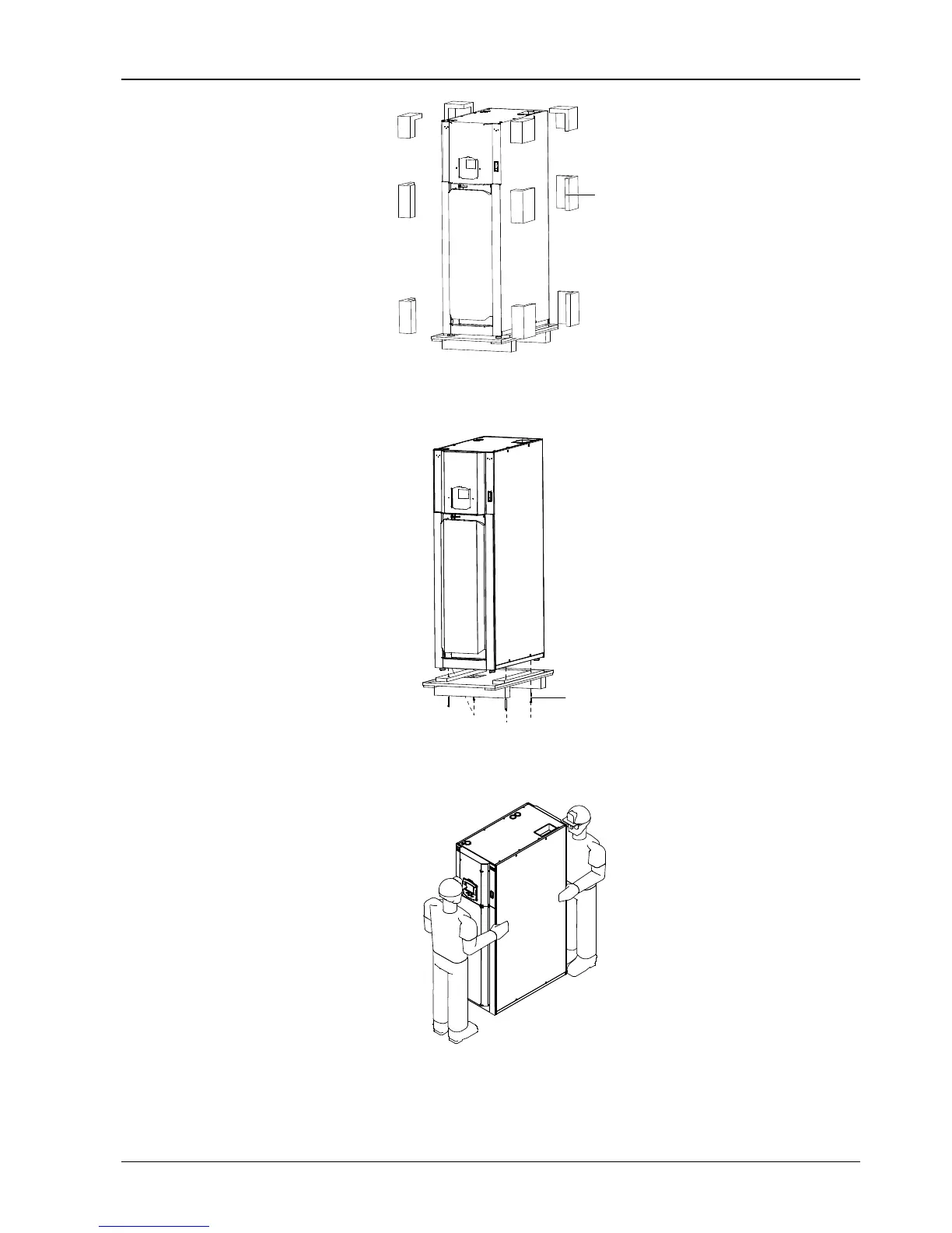 4. Using the unit castors, at least two trained persons can move the unit to the site for installation, as shown in