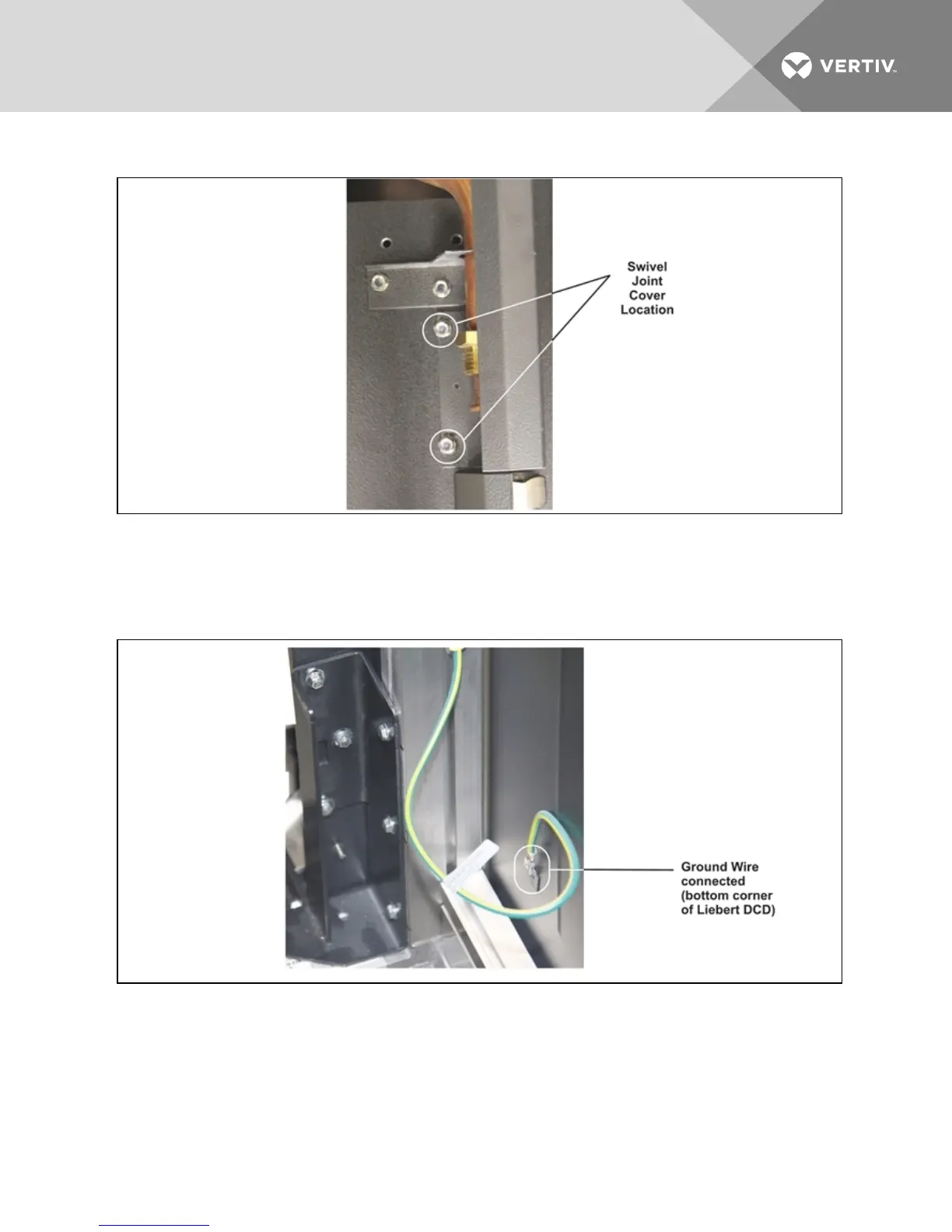 5. Connect the earth (ground) wire of the door to the frame of the Liebert DCD (see Figure 4.18