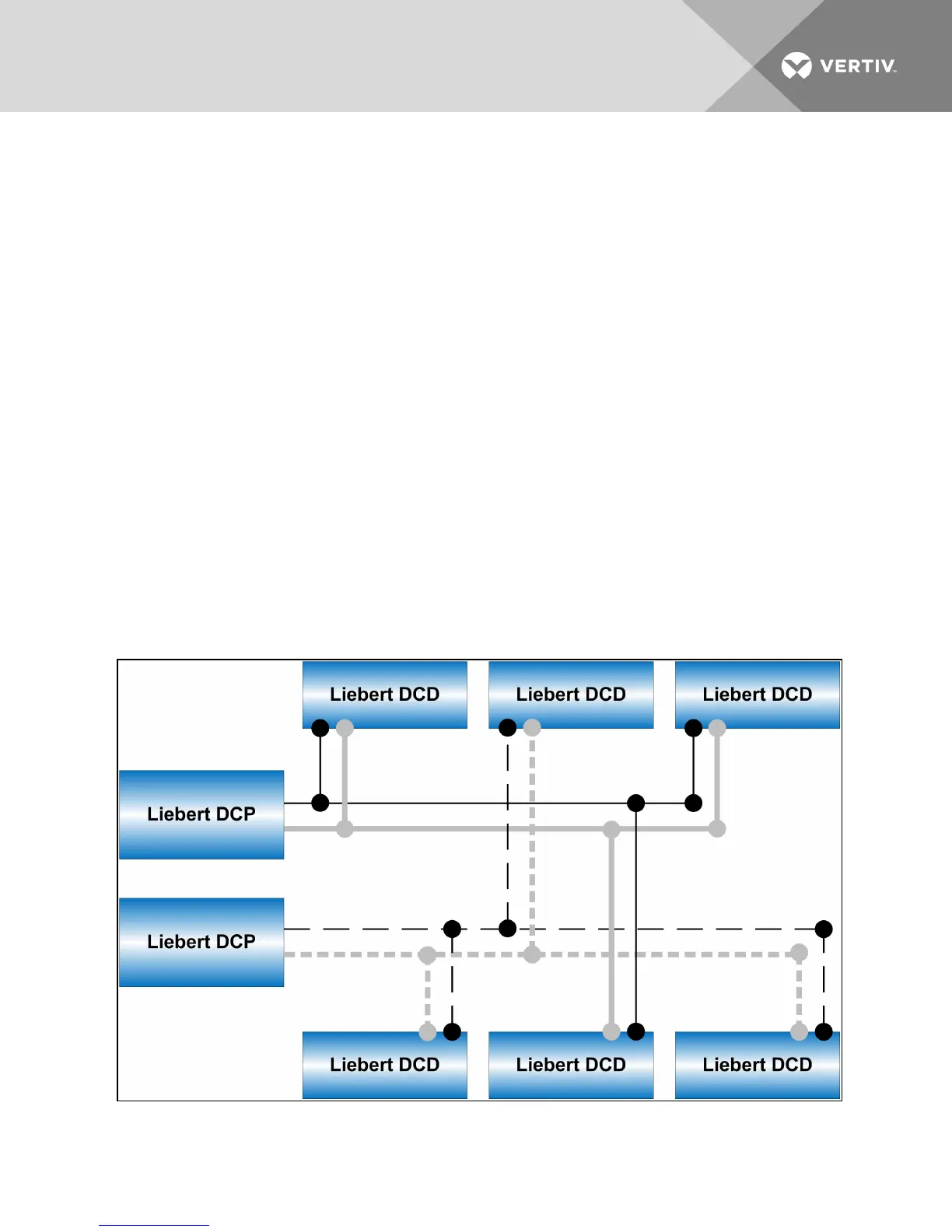 to another chilled water distribution unit. Interlacing the connection piping will keep half the Liebert DCD