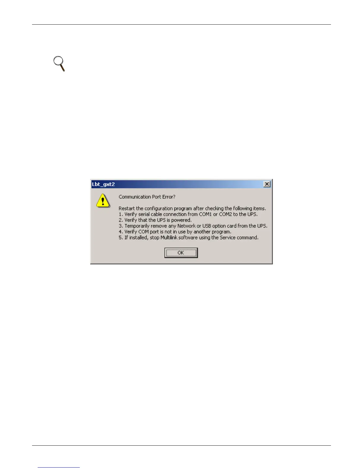 4. Verify that the COM port is not in use by other UPS communication software (or non-UPS