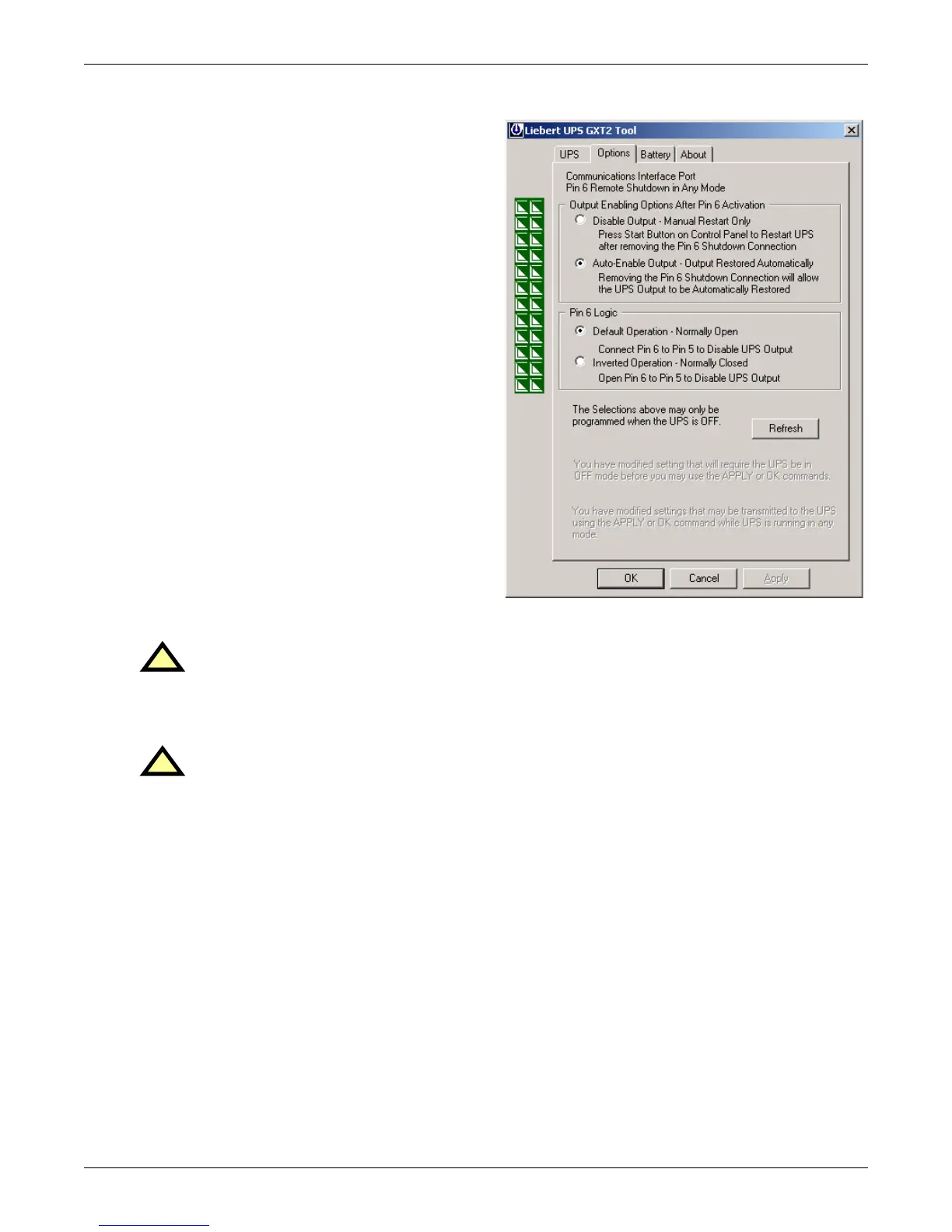 Note that when this option is selected and the UPS output is disabled using Pin 6, the UPS