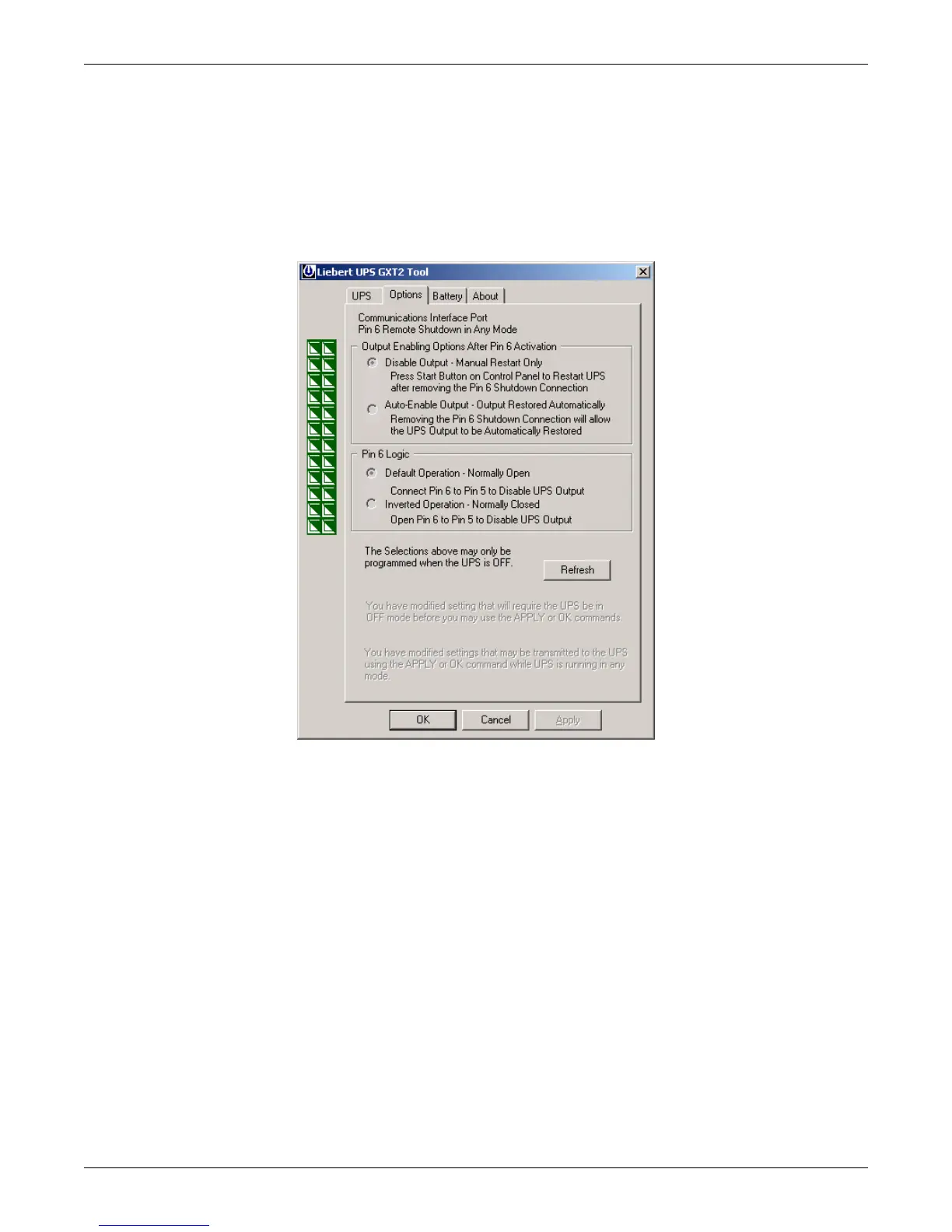 sion) that does not support the modification of these settings, the Options tab will display a reminder
