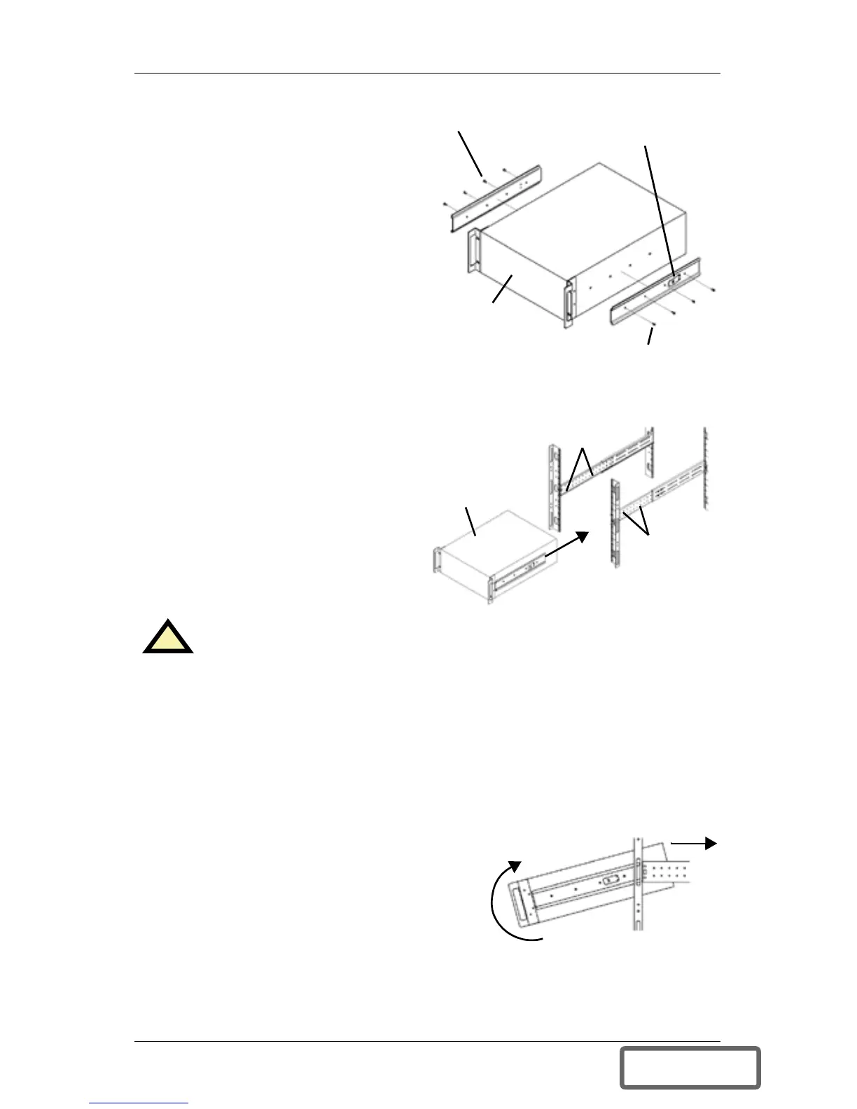 and sliding the equipment into rack (see figure in Step 6). Ends of