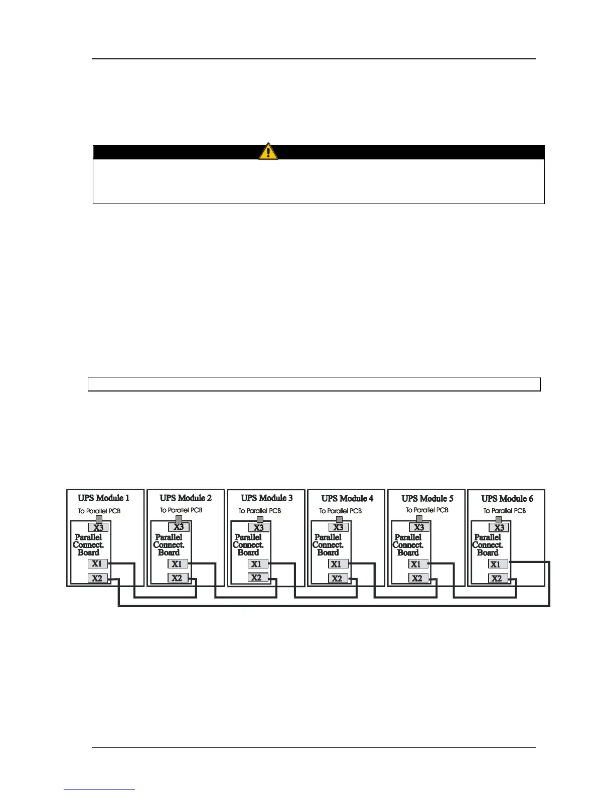 (X1) of the first UPS module and the other end to connector (X2) of the second module, and so to the next module until