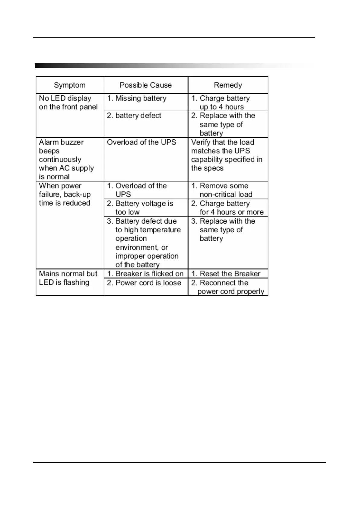 Liebert itON 600 - Troubleshooting Guide; Symptom-Cause-Remedy Table