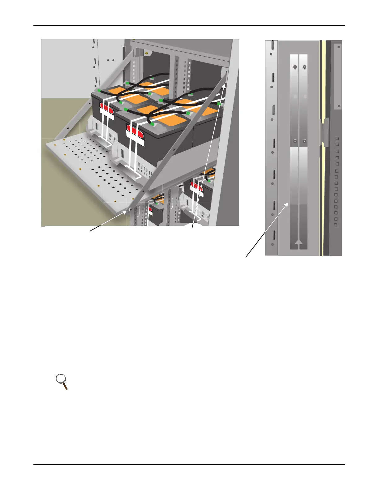 3. Remove the battery cabinet front panel to gain access to the connection bars.