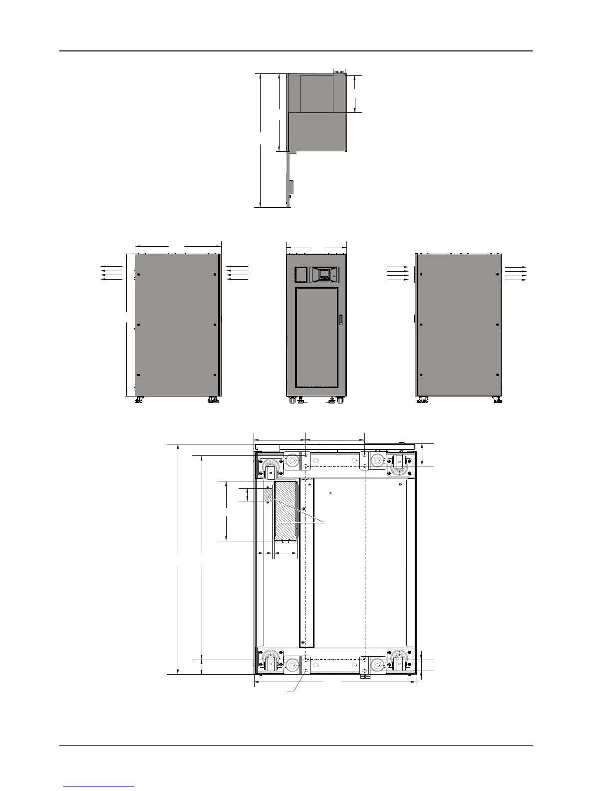 Figure 2-7 Top/front/side/bottom view of the UPS (unit: mm)