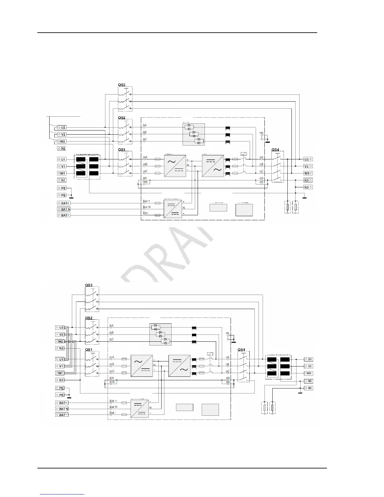 This UPS includes an insulation transformer at the UPS input. This transformer is installed in place of the batteries and provides