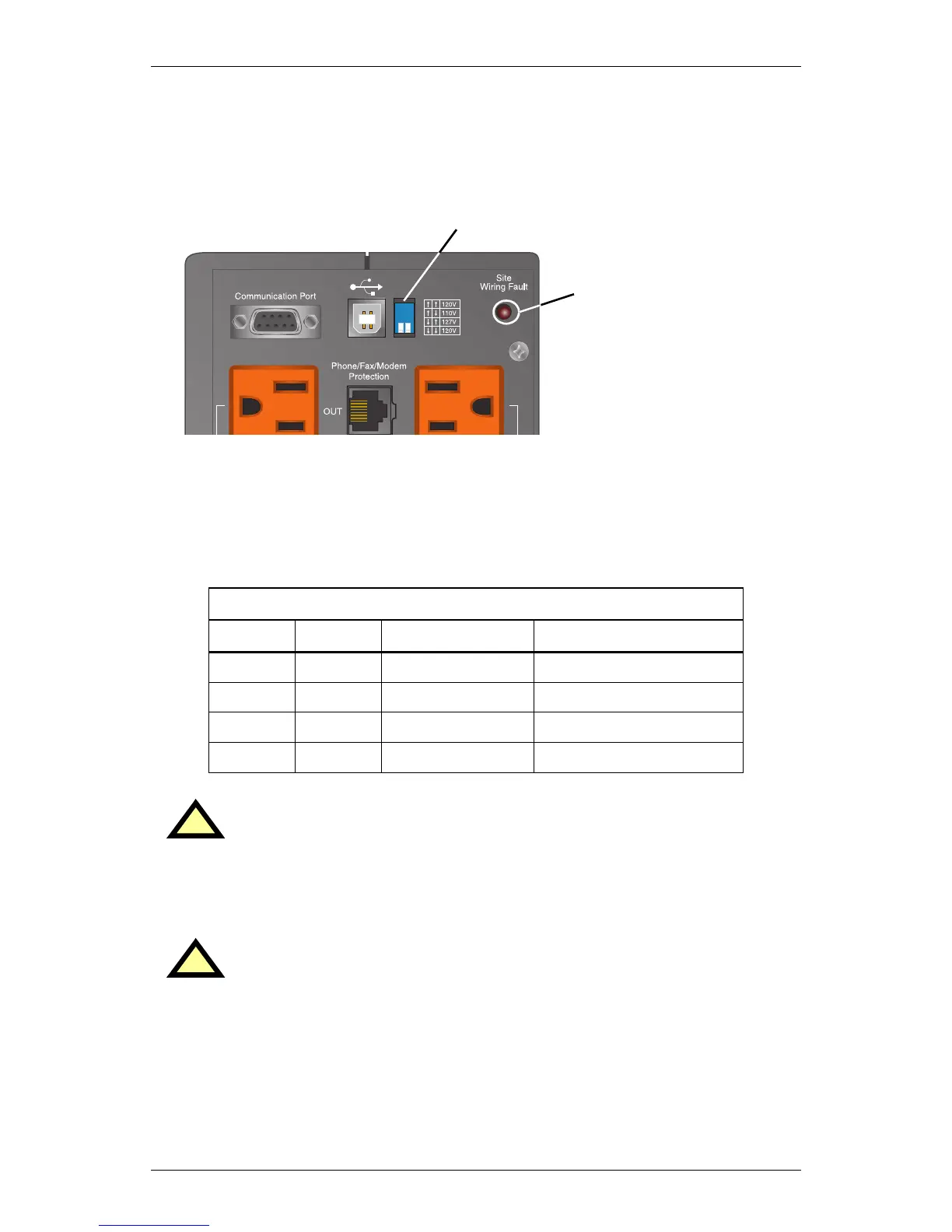 The Site Wiring Fault Indicator on the rear panel, as shown below,
