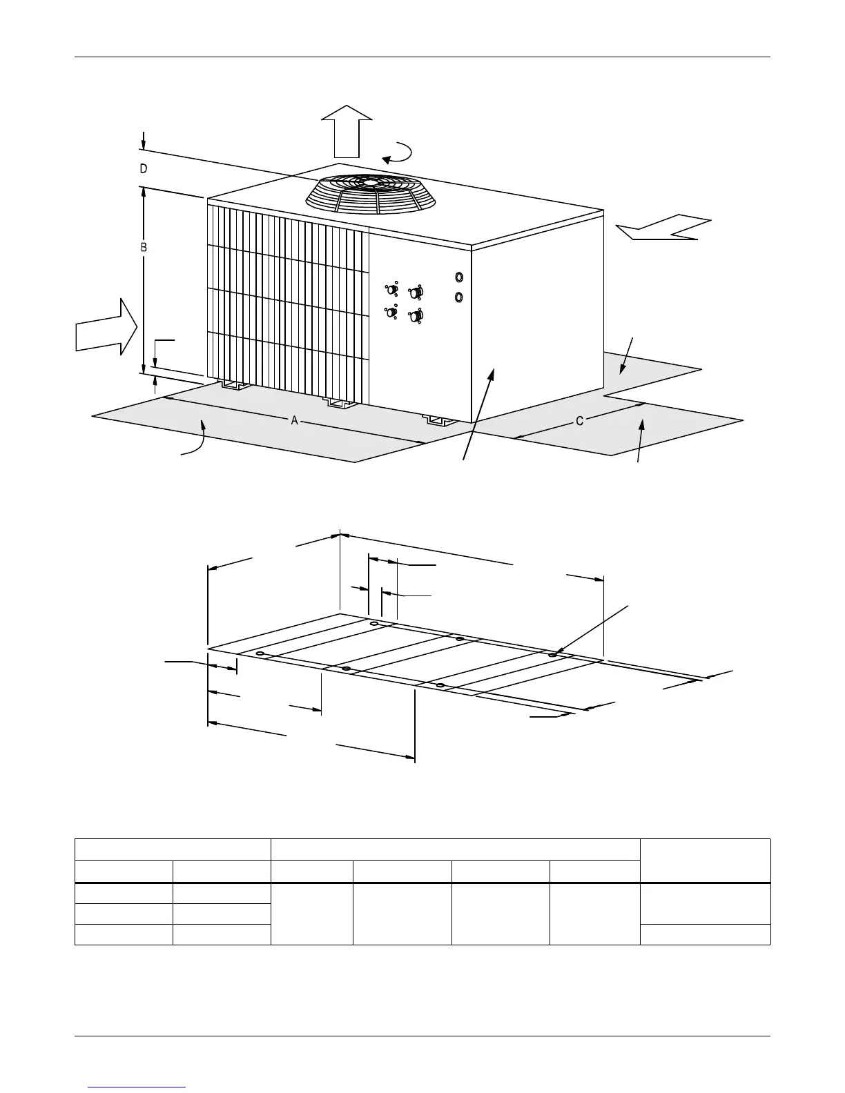 Table 2 Electrical and piping connections, top air discharge