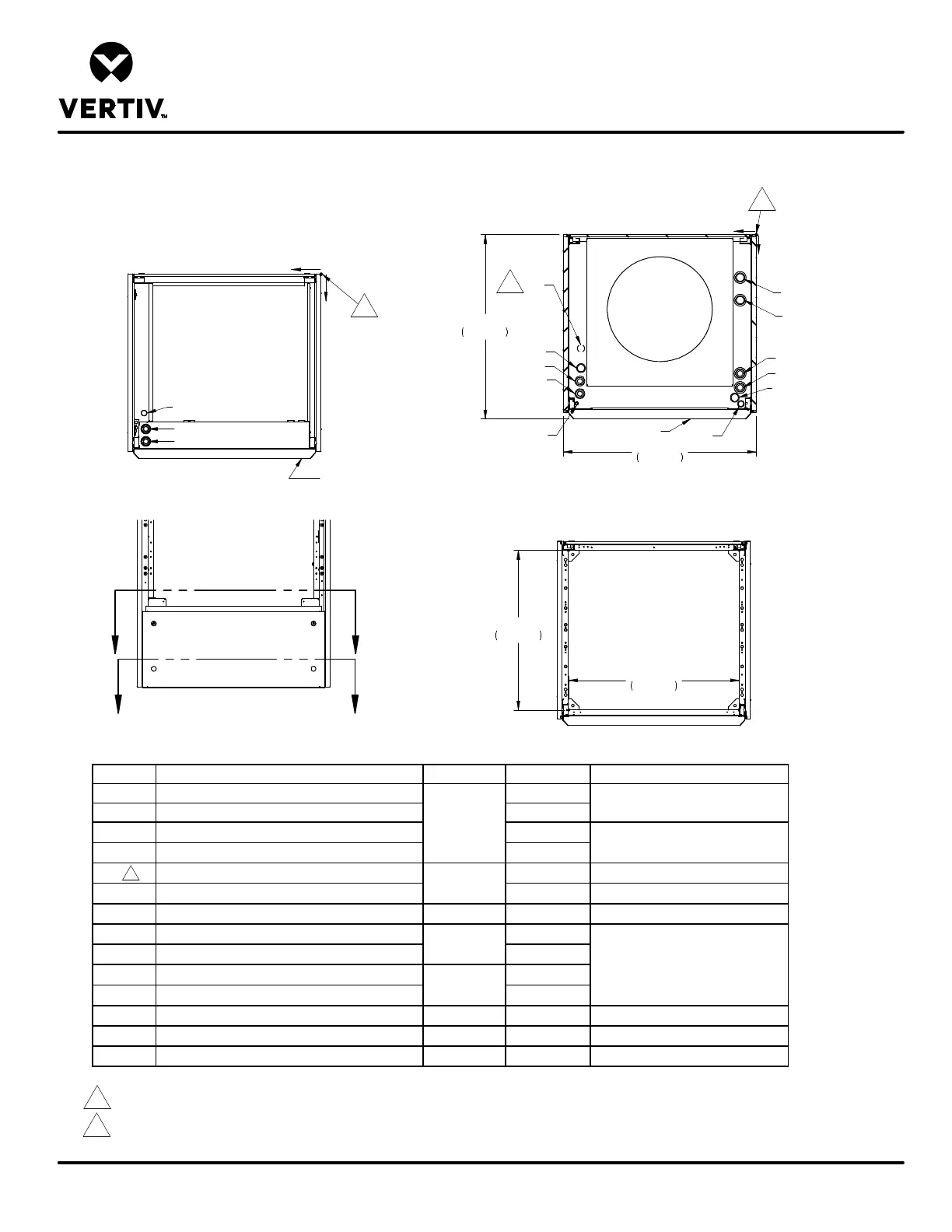 1. Drawing not to scale. All dimensions from rear corner of unit including panels, and have a tolerance of ± 1/2" (13mm).