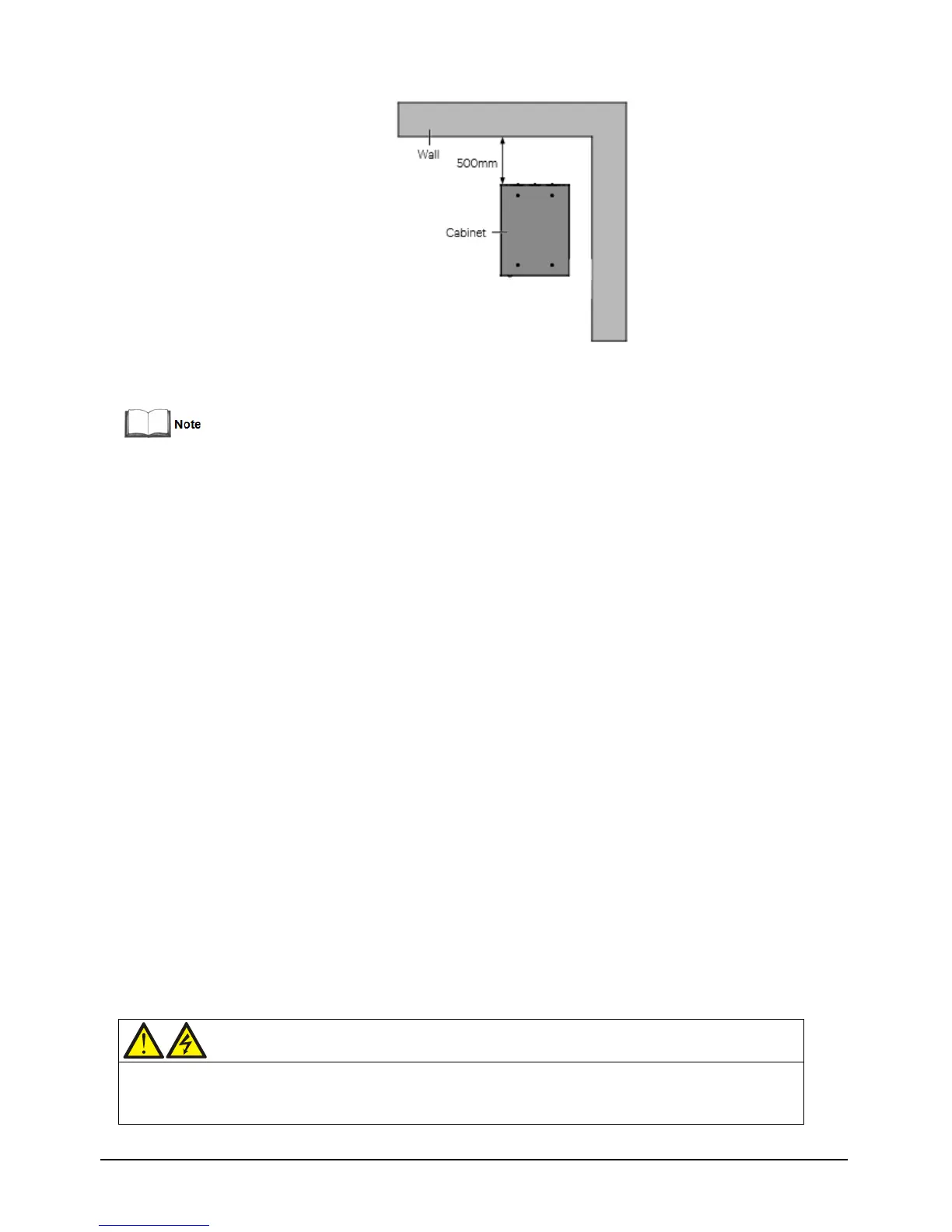 2.As shown in Figure 2-5, the demonstration of the clearance between the rear panel of the cabinet and the wall is