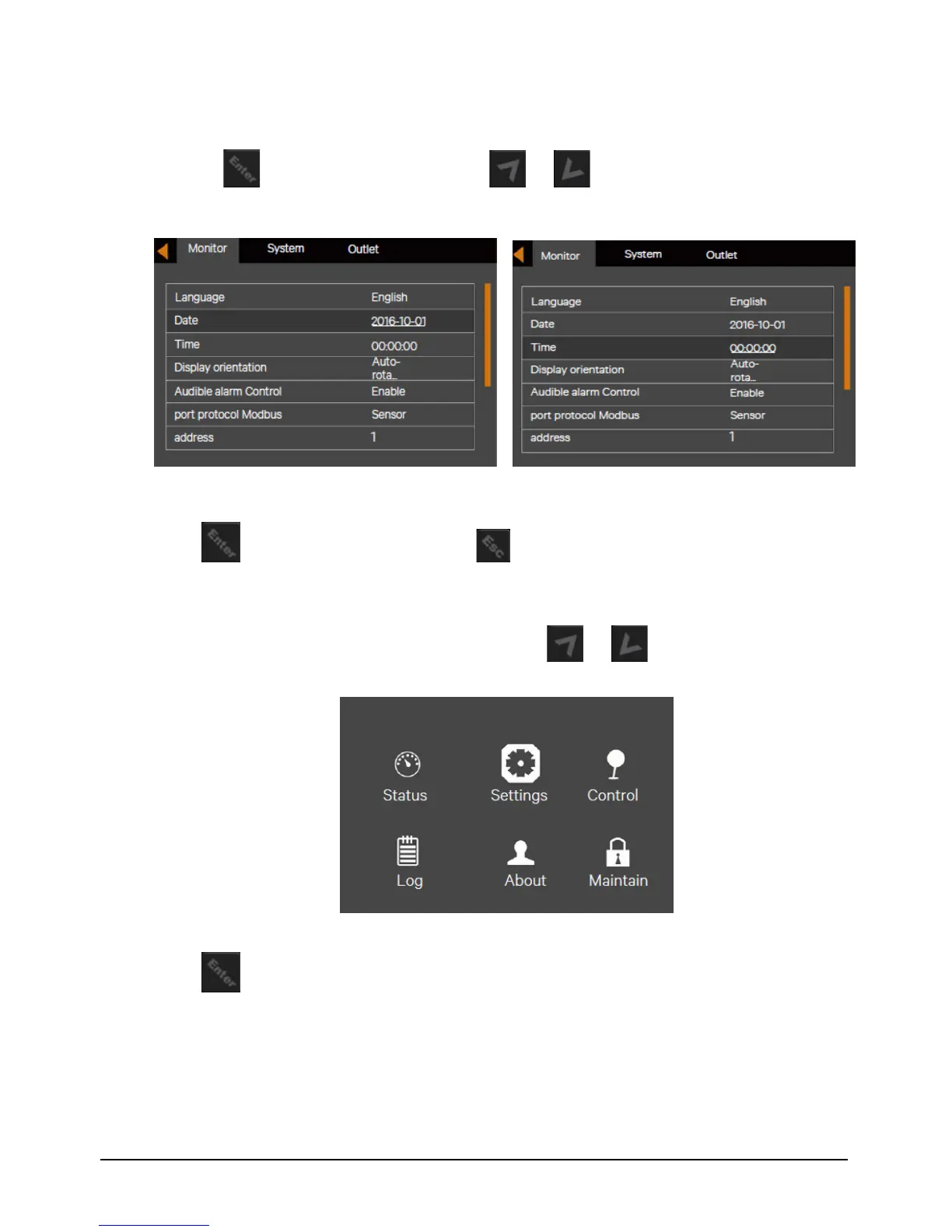 1. After powering on the UPS, at the main menu screen, press the or key to move the cursor to select