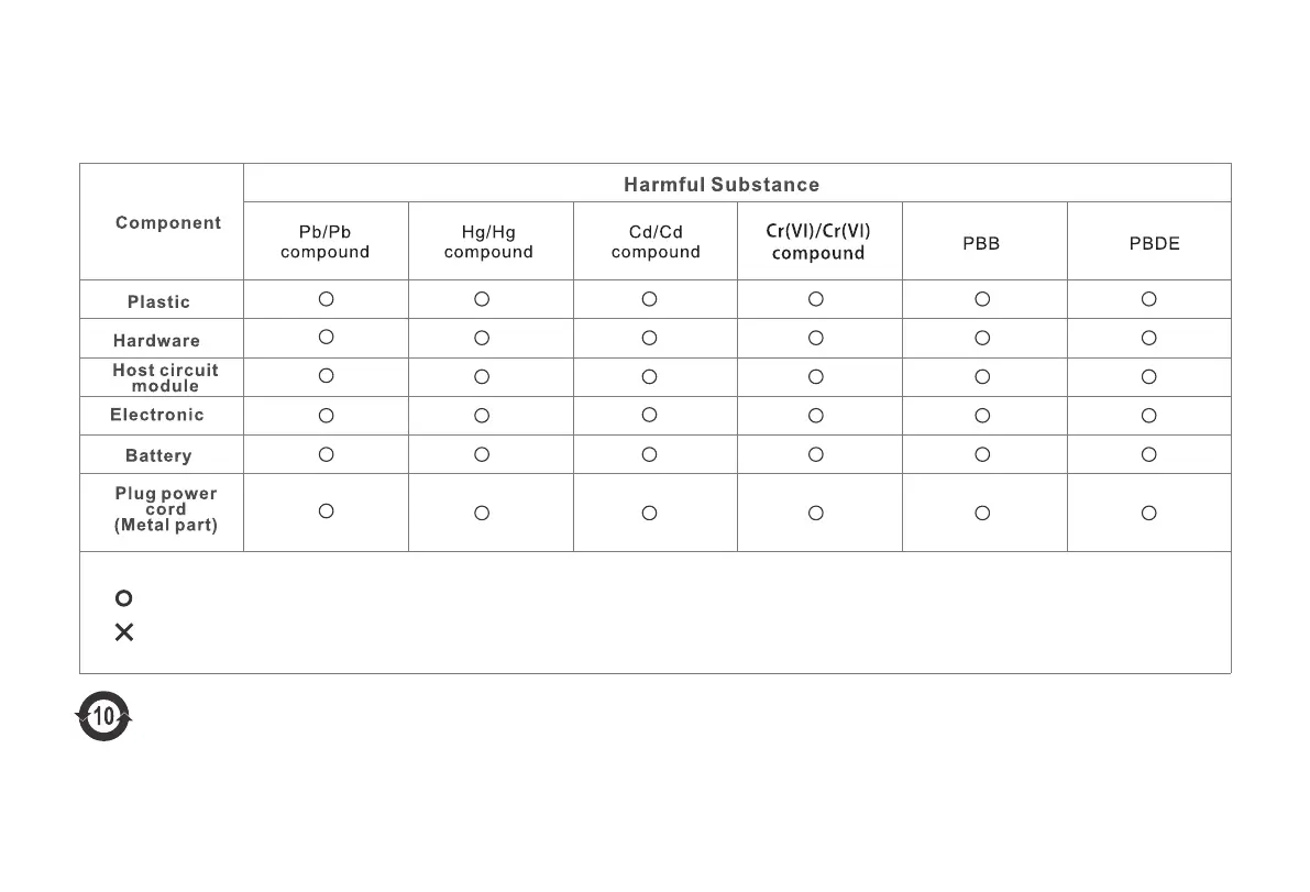 Indicates that the content of the hazardous substance in all homogeneous materials of the part is below the limit requirement specified in the current valid version of GB/T26572.