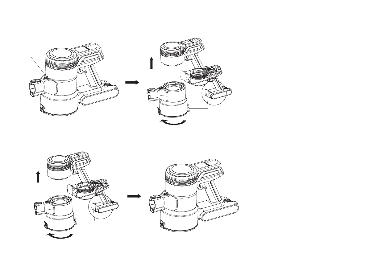 9) Ensure the rib on the dust cup fitted with the slot of main body.