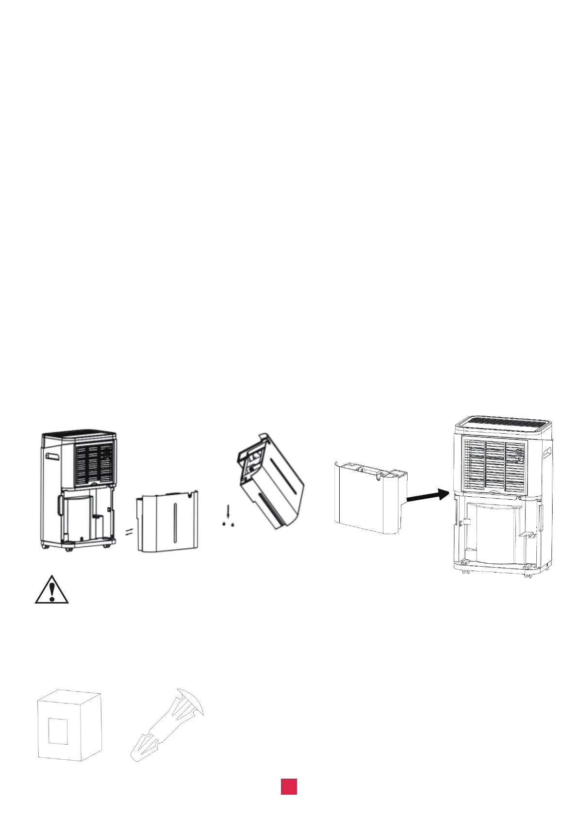 1.Do not discard the magnets and plastic rivets in the tank. Otherwise, the dehumidifier cannot