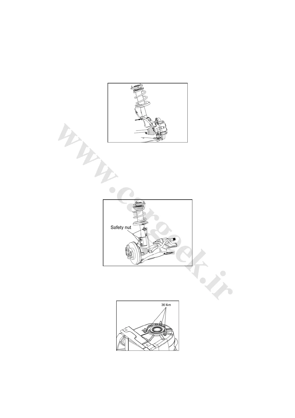 and bolts connecting the front shock damper assembly and the steering knuckle, as shown in Fig.