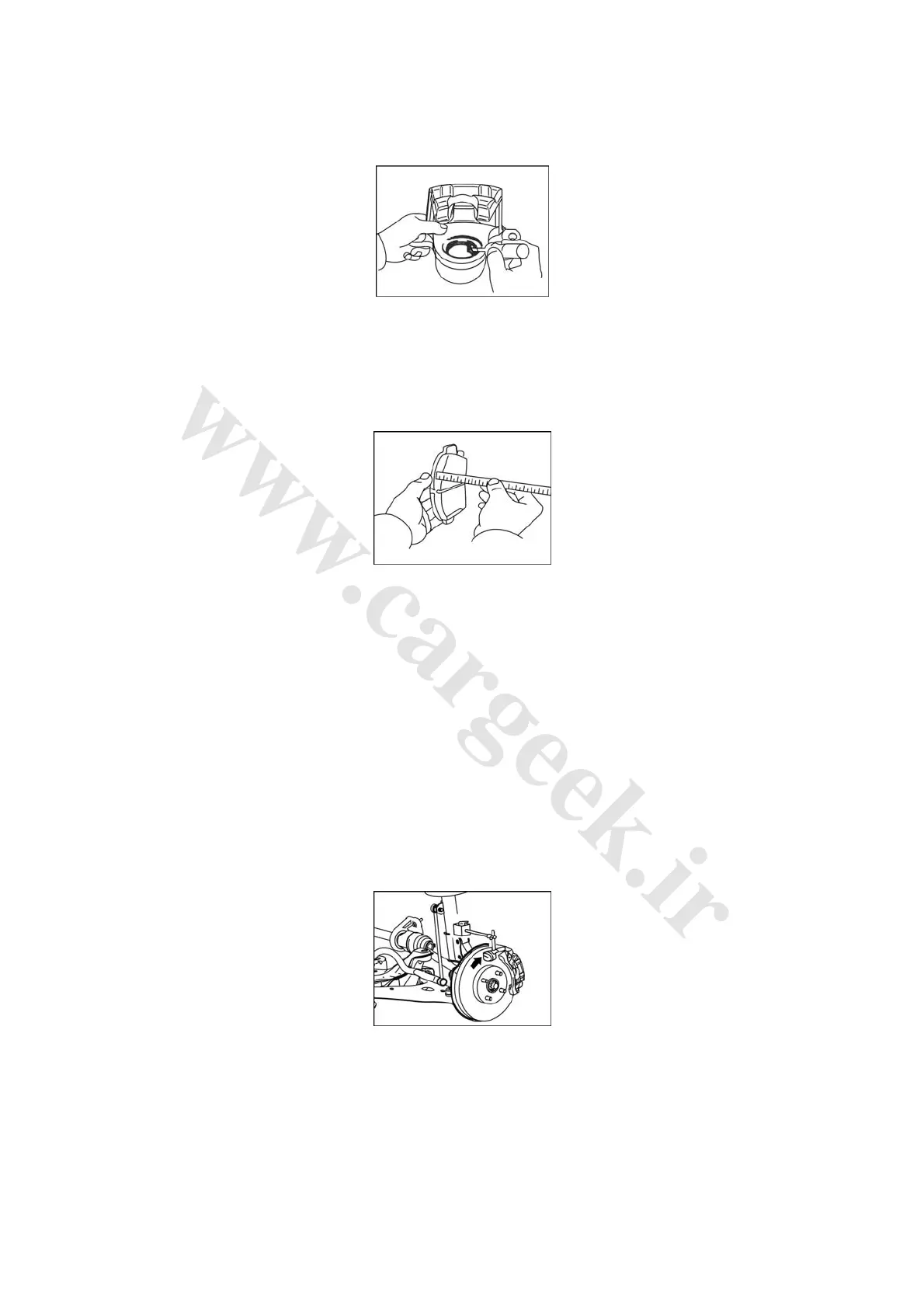 2) Check the lining thickness of the brake pad. Measure the thickness by a ruler. See Fig. 2-56.