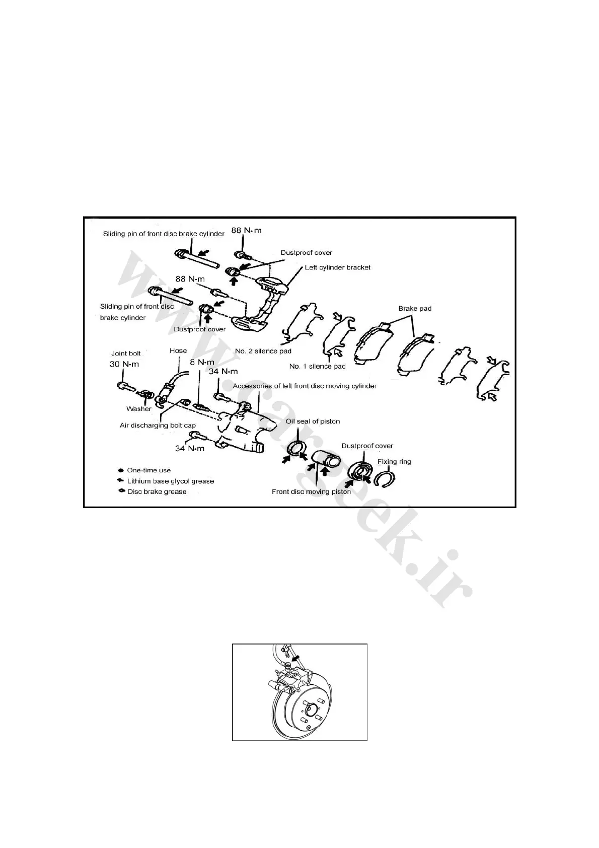 3) Dismantle the slave cylinder of the rear disc brake.
