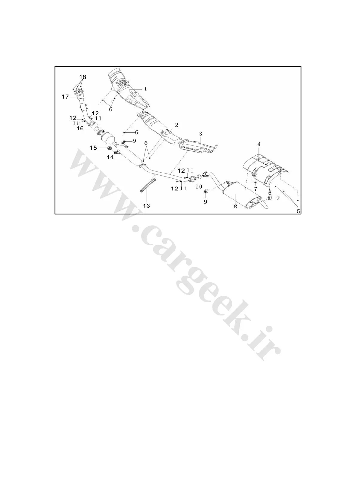 7. Heat-insulating anti-vibration pad 8. Rear muffler assembly 1