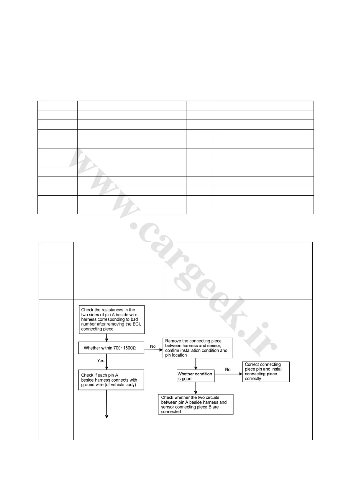 Sensor open/short circuit: fault due