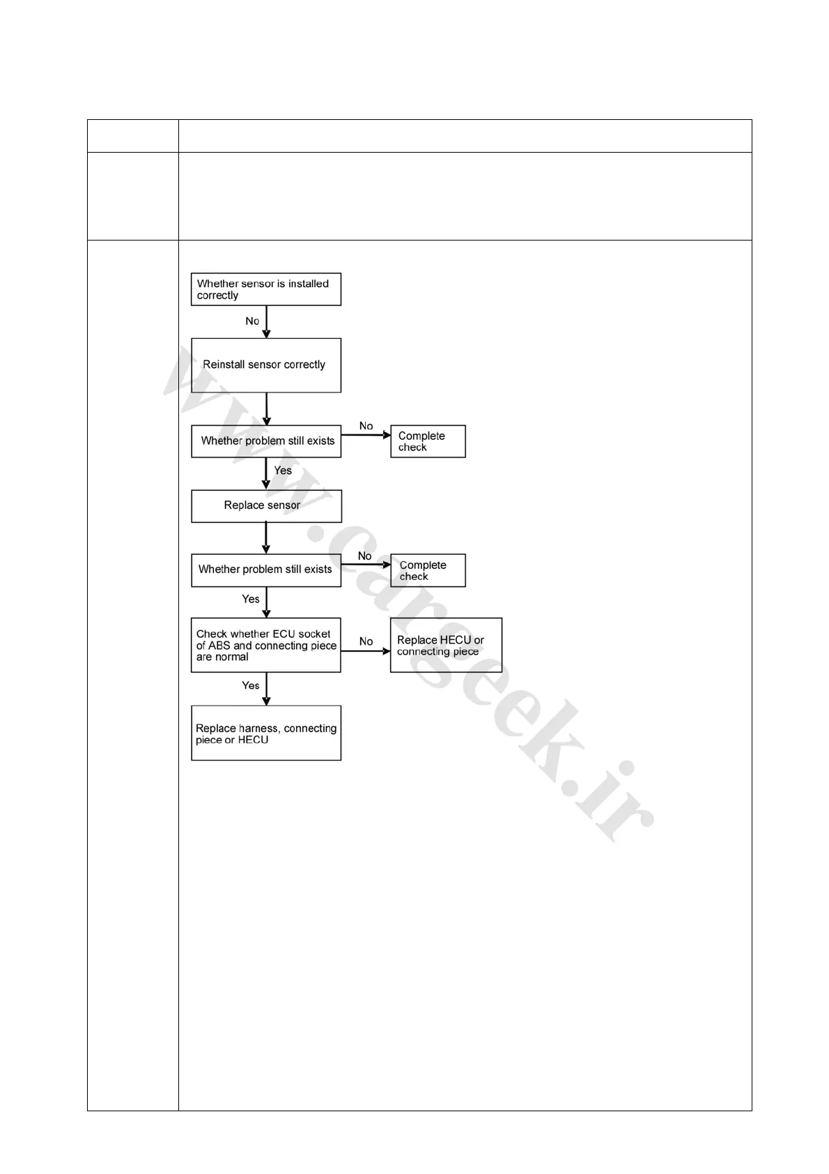 Sensor is damaged Sensor is not properly installed