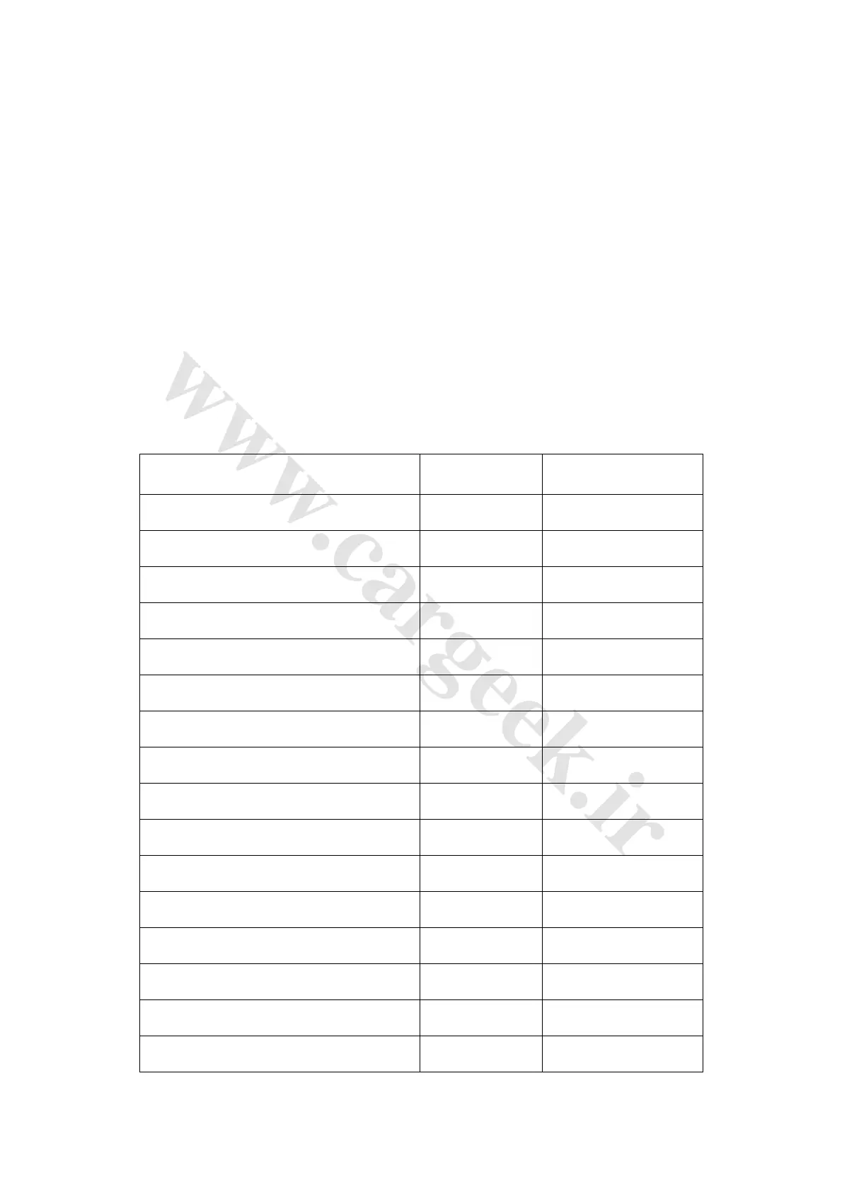 Note: Do not use bulbs without specifications indicated in the table below, or the car lamps will be