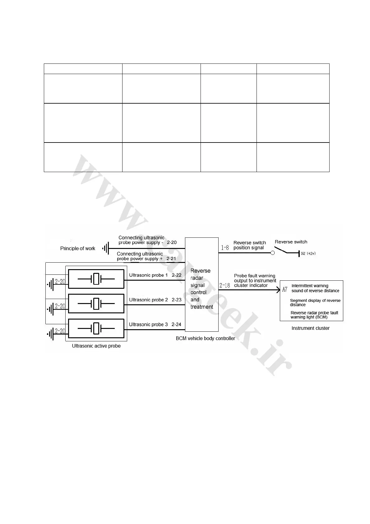 and vehicle body, the voltage shall be 10-14V. If it is normal, replace reverse radar; if not, proceed