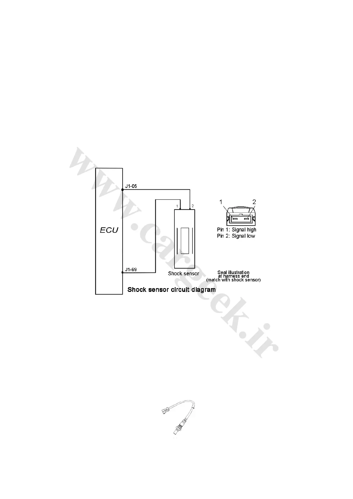 signal of the shock sensor will be sent to the ECU for amplification and wave filtering, and then