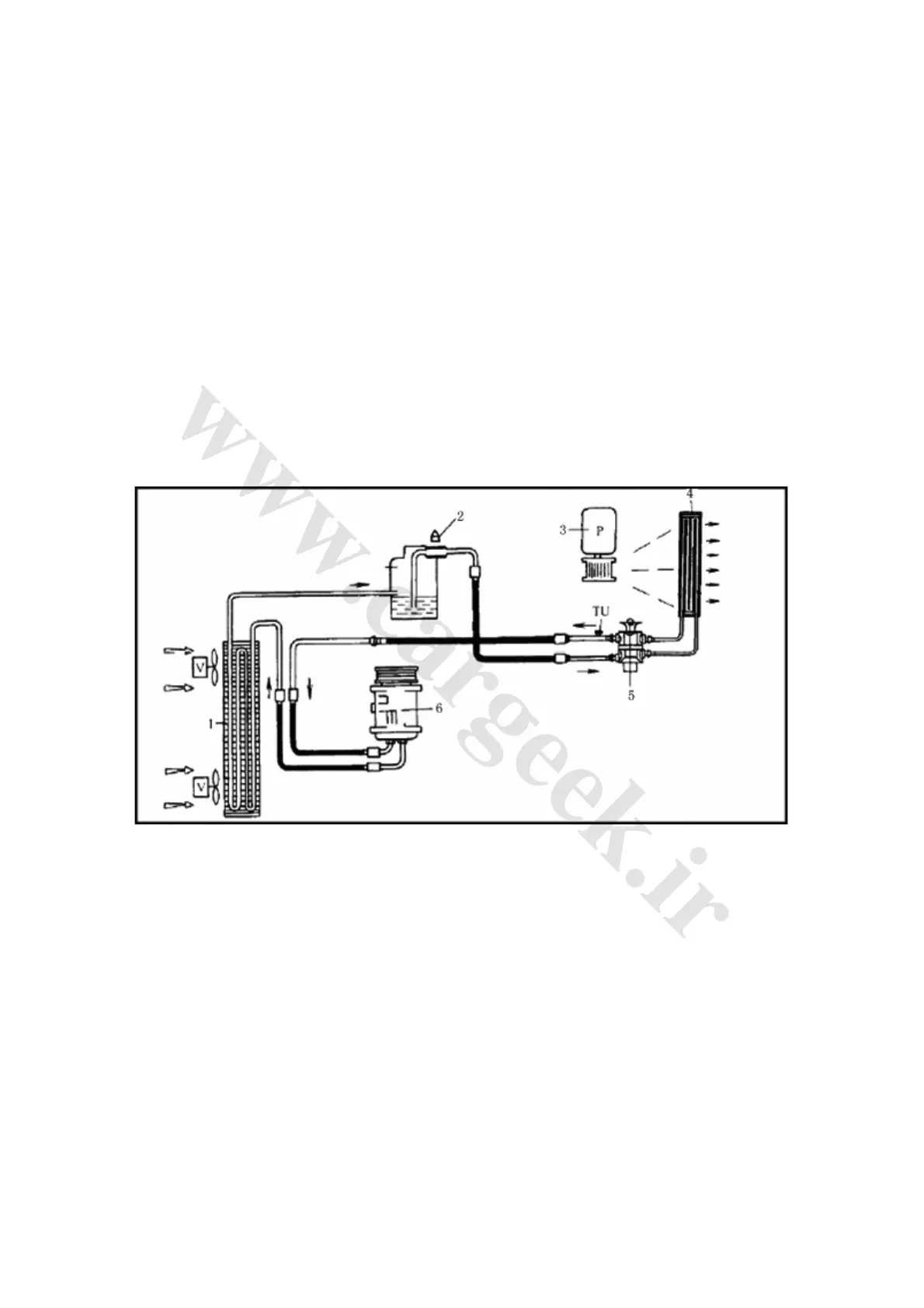3. Blower 4. Evaporator 5. Expansion valve 6. Compressor