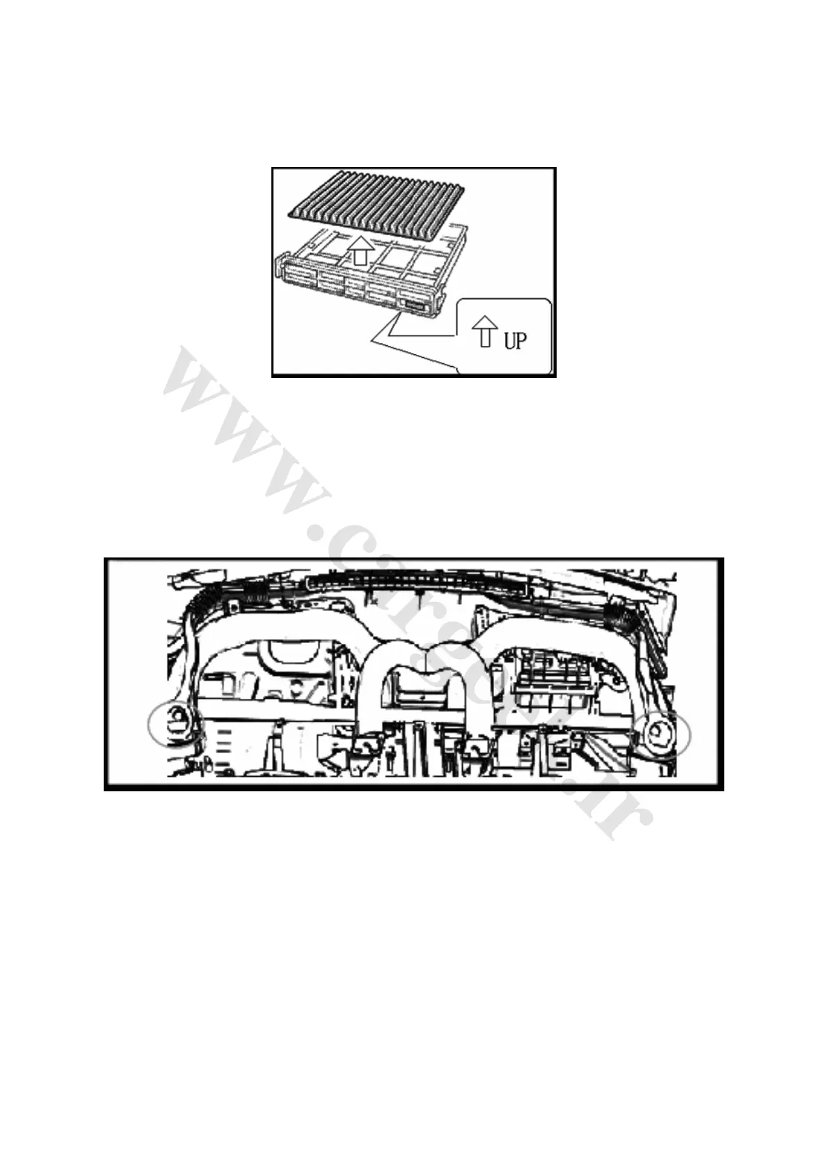 ② Pull away the carpet, disassemble left and right upper air ducts, and then take out all the air