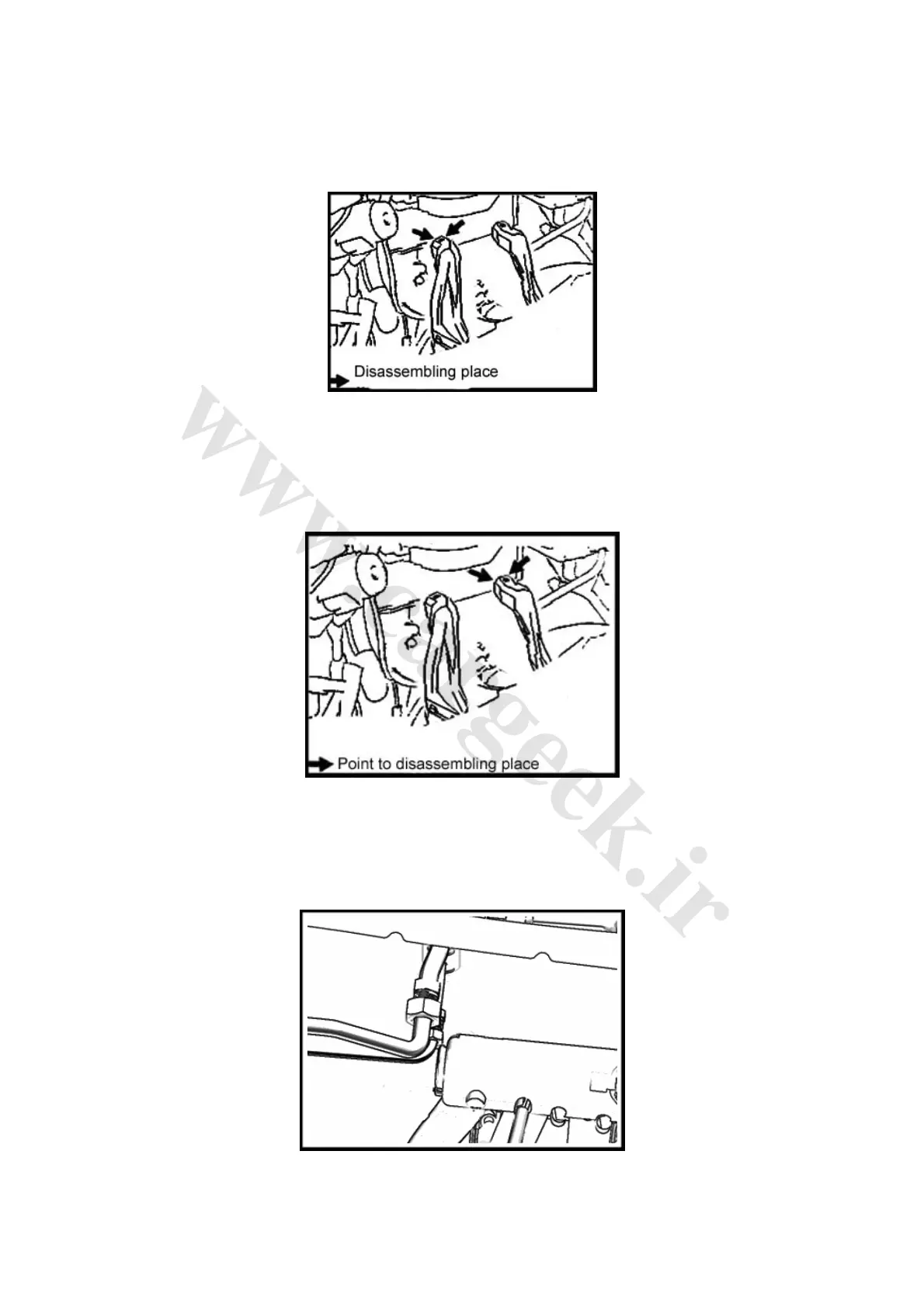 Disconnect the upper air duct on the right floor. According to the position indicated by the
