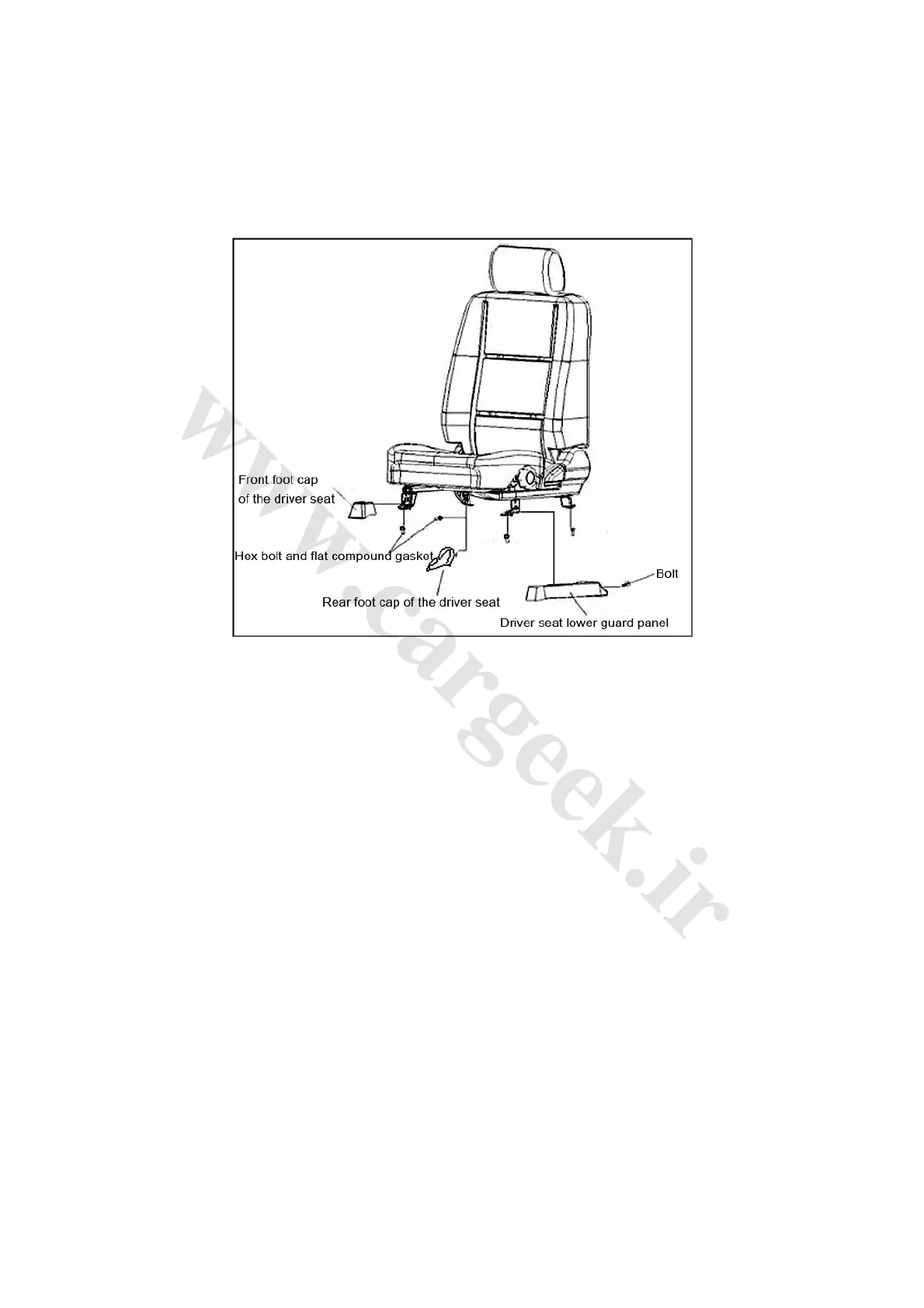 (5) Remove the rear two bolts of the driver seat and the whole assembly.