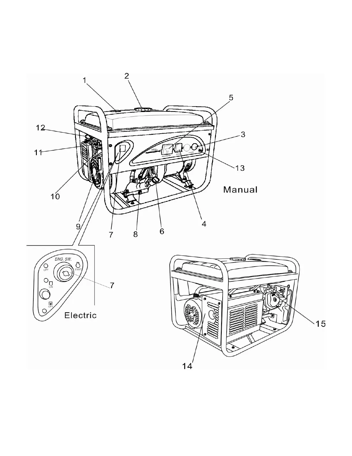 Lifan LF3750 - Controls and Features Overview; Generator and Engine Controls Identification