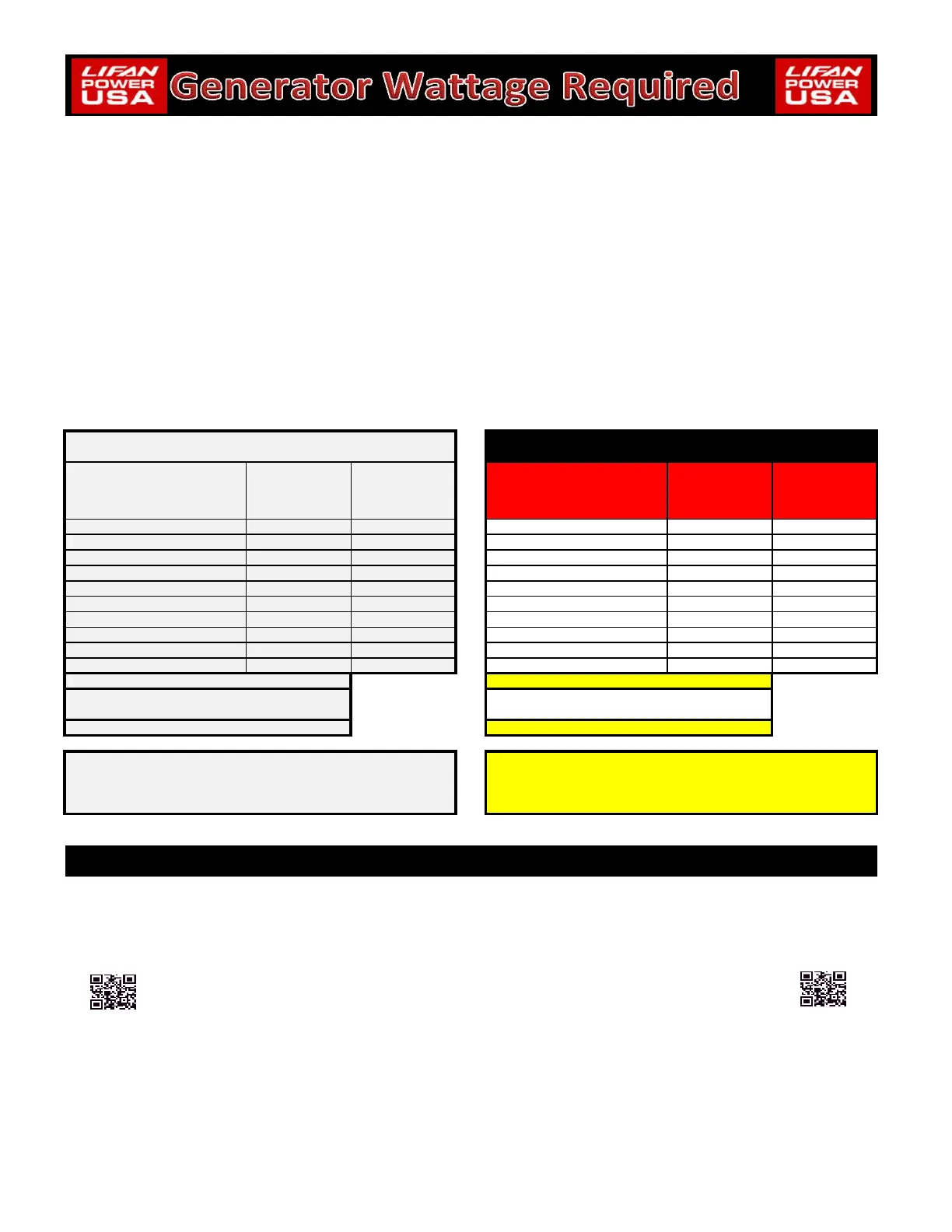 This worksheet will aid in determining the generator that best fits your needs based on the appliances/tools you