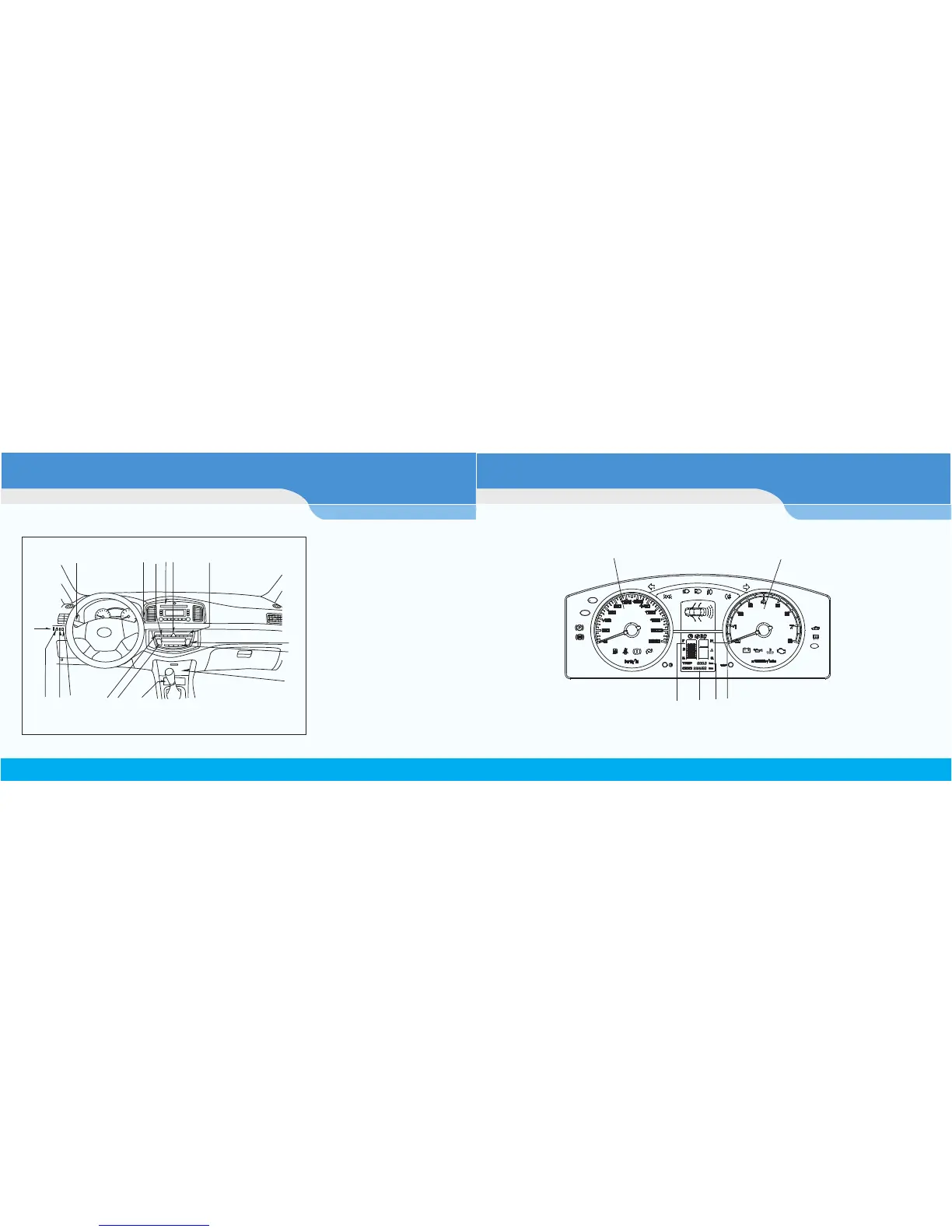 1、 2、 3、 4、 5、 6、Speedometer Tachometer Fuel level dis play Odometer Trip odometer Coola nt temperature display