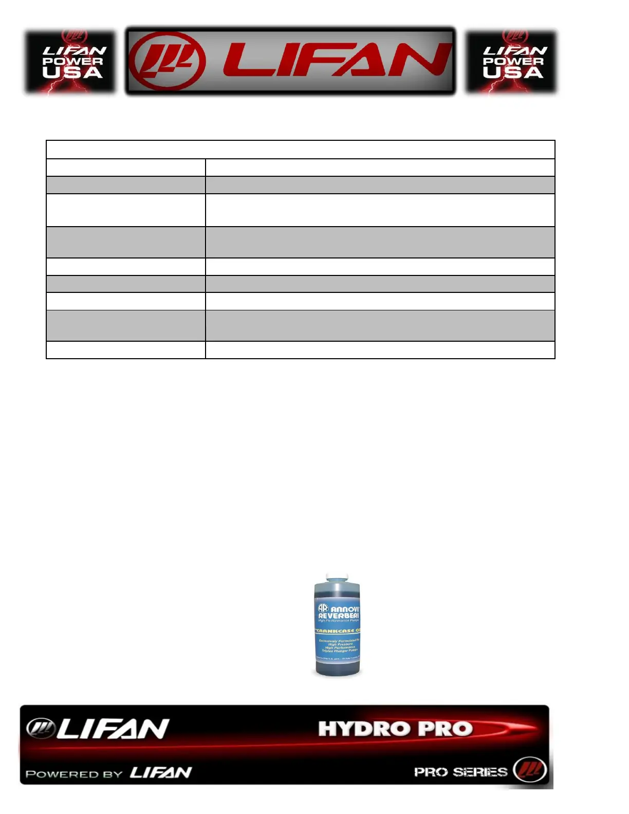 Available from Lifan Power USA