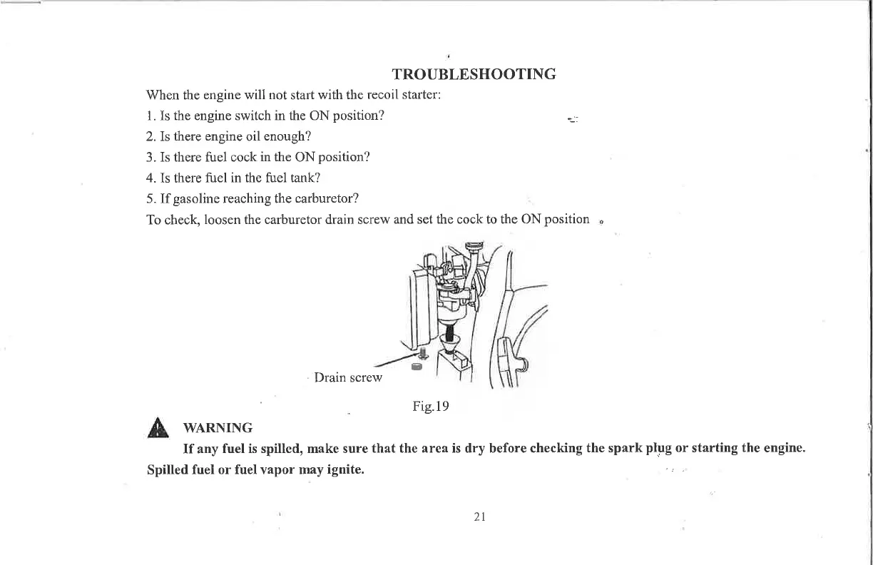 loosen the carburetor drain screw