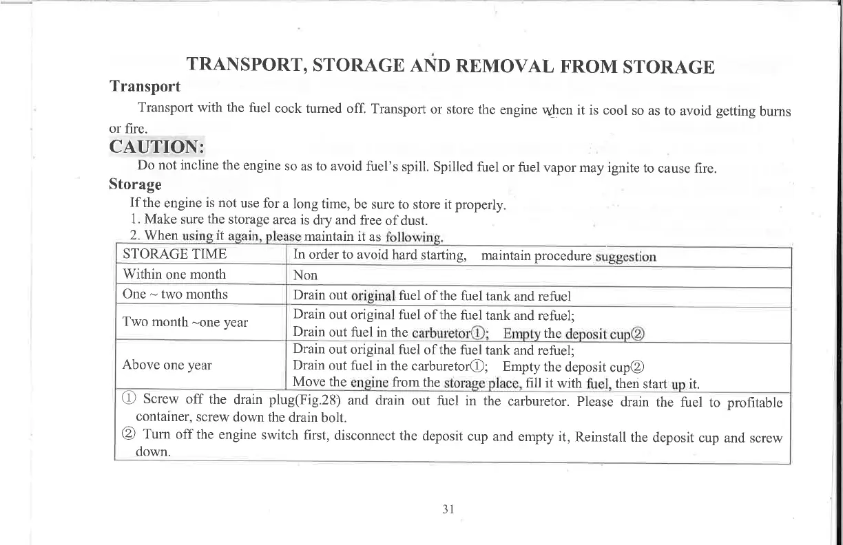 Lifan M27VTE - Transport, Storage and Removal from; Storage