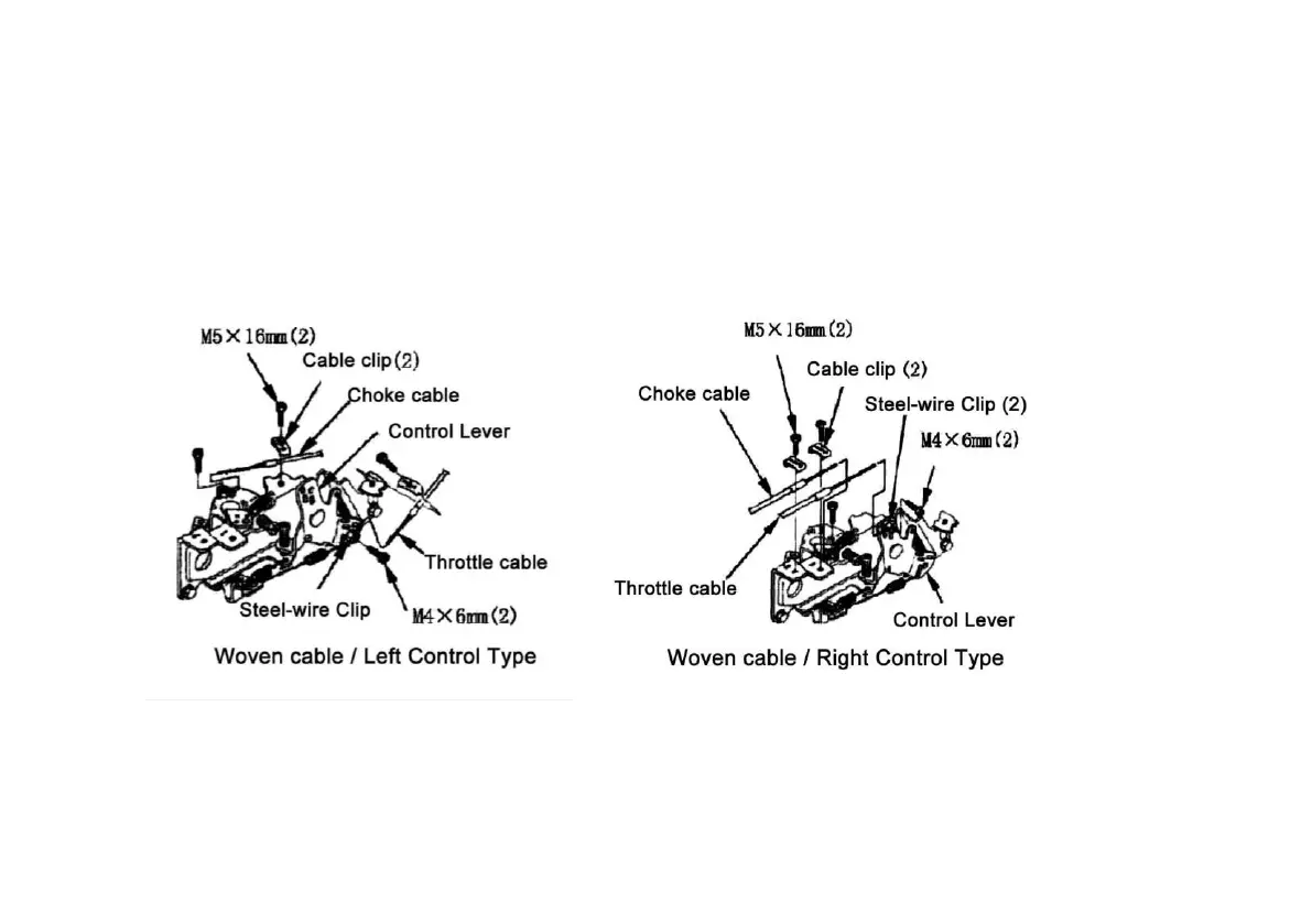 Les leviers d'accélérateur et de starter sont conçus avec des trous pour les accessoires de câble en option.