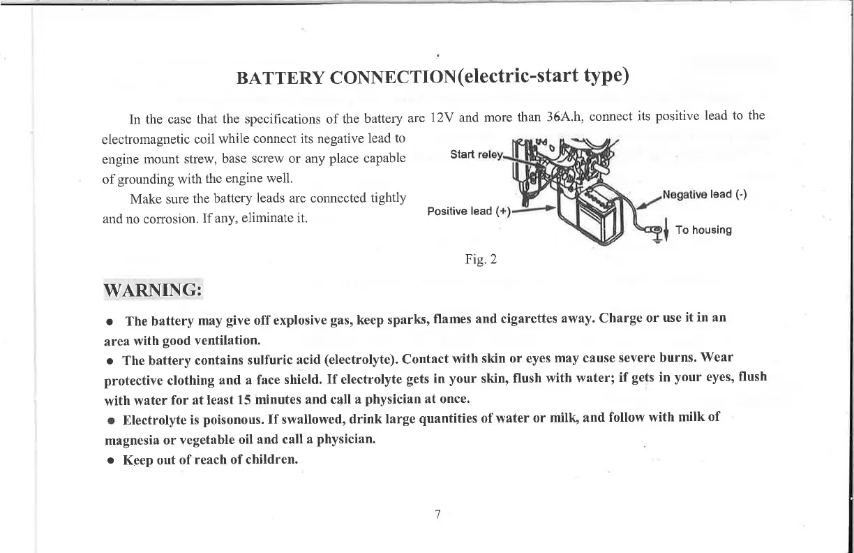 Lifan M27VTE - BÀTTERY CONNECTION(Electric-Start Type)